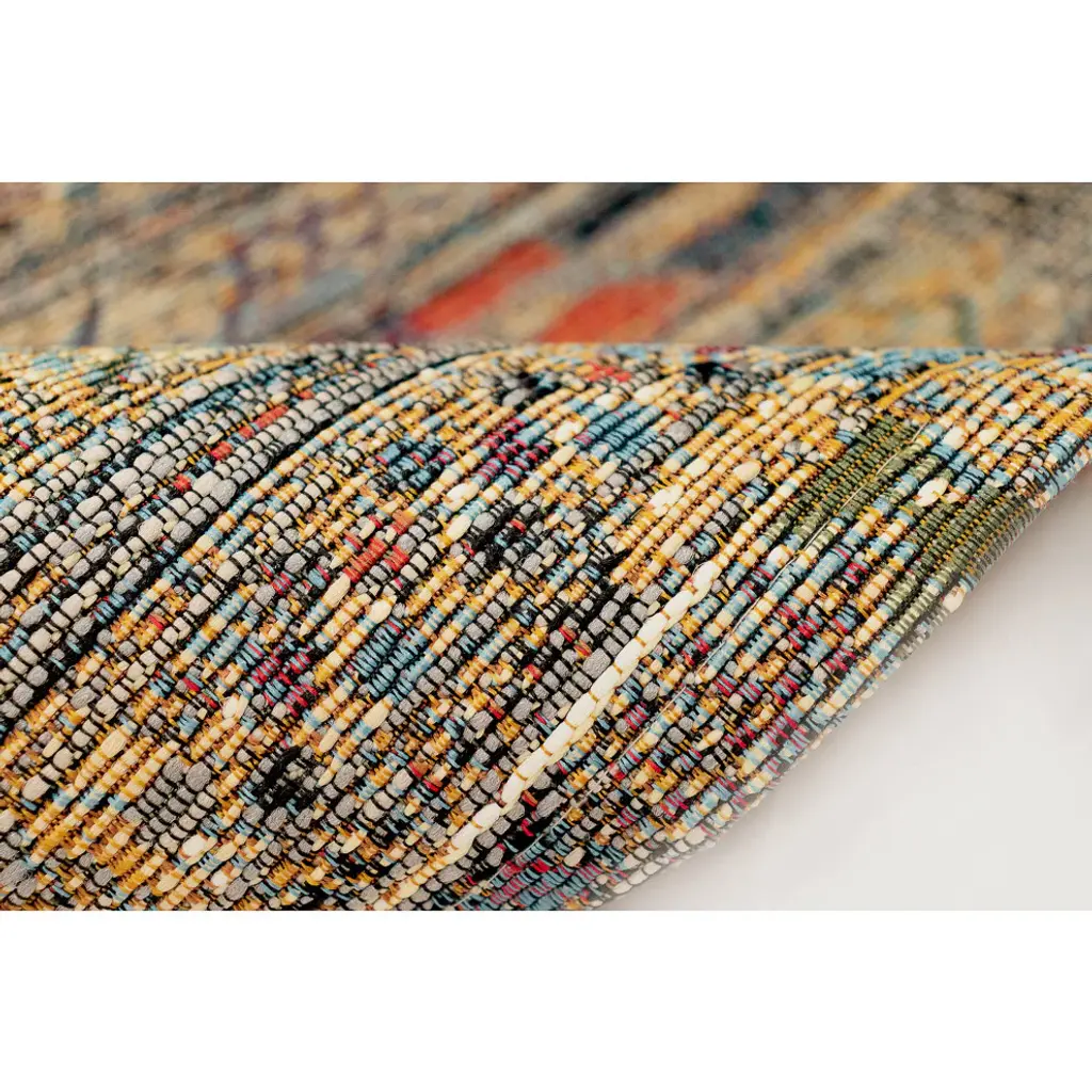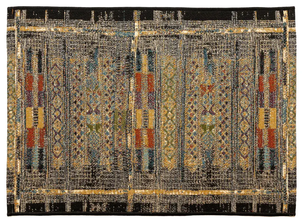 This mat is inspired by traditional tribal designs that features linear patterns detailed with multiple colors and intricate shapes. The black background serves to highlight the vivid accent colors in yellow, red, purple and ivory to complement its bold design, making this a truly unique piece for any space inside or outside your home. Made in Egypt from 75% polypropylene/25% polyester, reinforced with a latex non-skid backing, the Esencia Collection is Power Loomed to create intricate designs with a broad color spectrum and a high-quality finish. The material is flatwoven, low profile, weather resistant, UV stabilized for enhanced fade resistance, durable and ideal for those high traffic areas such as your patio, sunroom, kitchen, entryway, hallway, living room and bedroom making this the ideal indoor or outdoor rug. Detailed patterns are offered in an eclectic mix of styles ranging from tropical, coastal, geometric, contemporary and traditional designs.