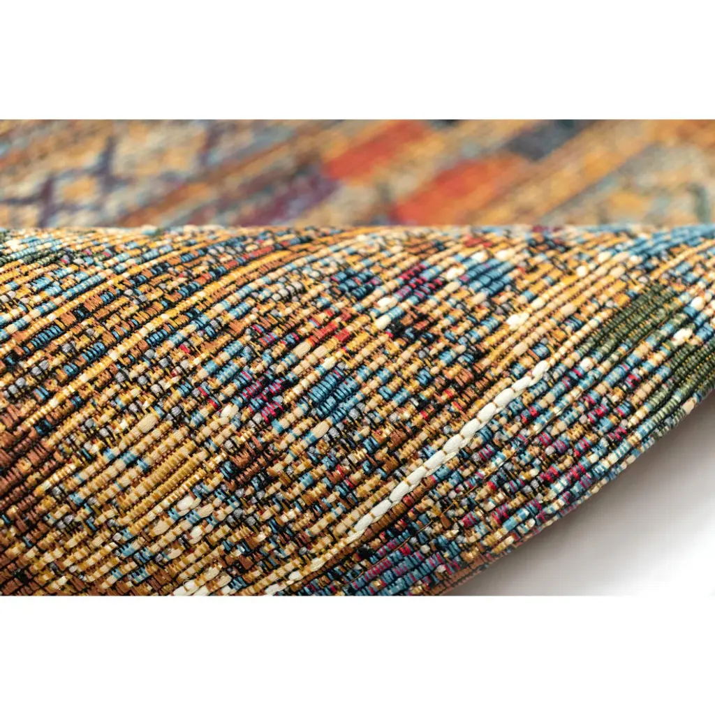 This mat is inspired by traditional tribal designs that features linear patterns detailed with multiple colors and intricate shapes. The yellow gold background serves to highlight the vivid accent colors in yellow, red, purple and ivory to complement its bold design, making this a truly unique piece for any space inside or outside your home. Made in Egypt from 75% polypropylene/25% polyester, reinforced with a latex non-skid backing, the Esencia Collection is Power Loomed to create intricate designs with a broad color spectrum and a high-quality finish. The material is flatwoven, low profile, weather resistant, UV stabilized for enhanced fade resistance, durable and ideal for those high traffic areas such as your patio, sunroom, kitchen, entryway, hallway, living room and bedroom making this the ideal indoor or outdoor rug. Detailed patterns are offered in an eclectic mix of styles ranging from tropical, coastal, geometric, contemporary and traditional designs.