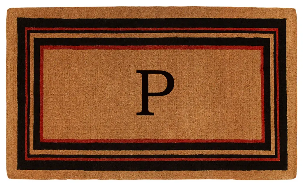 Over-sized for larger areas, this gorgeous monogrammed doormat is expertly made by hand. Made of 100% coir, this durable, heavy-duty fiber is earth friendly, naturally abrasive to scrape shoes clean, retains its shape no matter the foot traffic and absorbs moisture. Height is 1"-2". vacuum, sweep or lightly hose clean.