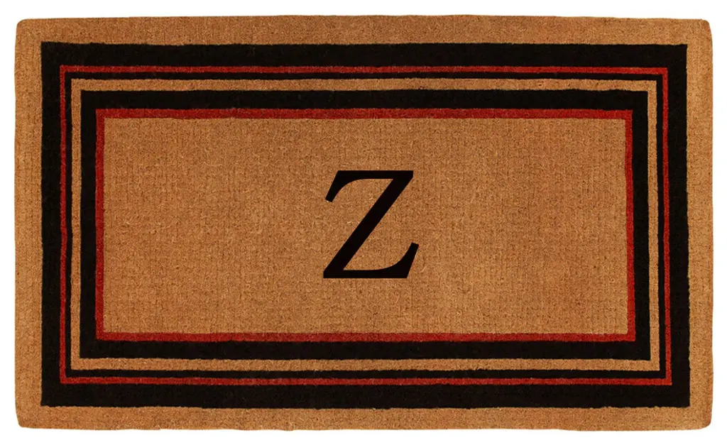 Over-sized for larger areas, this gorgeous monogrammed doormat is expertly made by hand. Made of 100% coir, this durable, heavy-duty fiber is earth friendly, naturally abrasive to scrape shoes clean, retains its shape no matter the foot traffic and absorbs moisture. Height is 1"-2". vacuum, sweep or lightly hose clean.