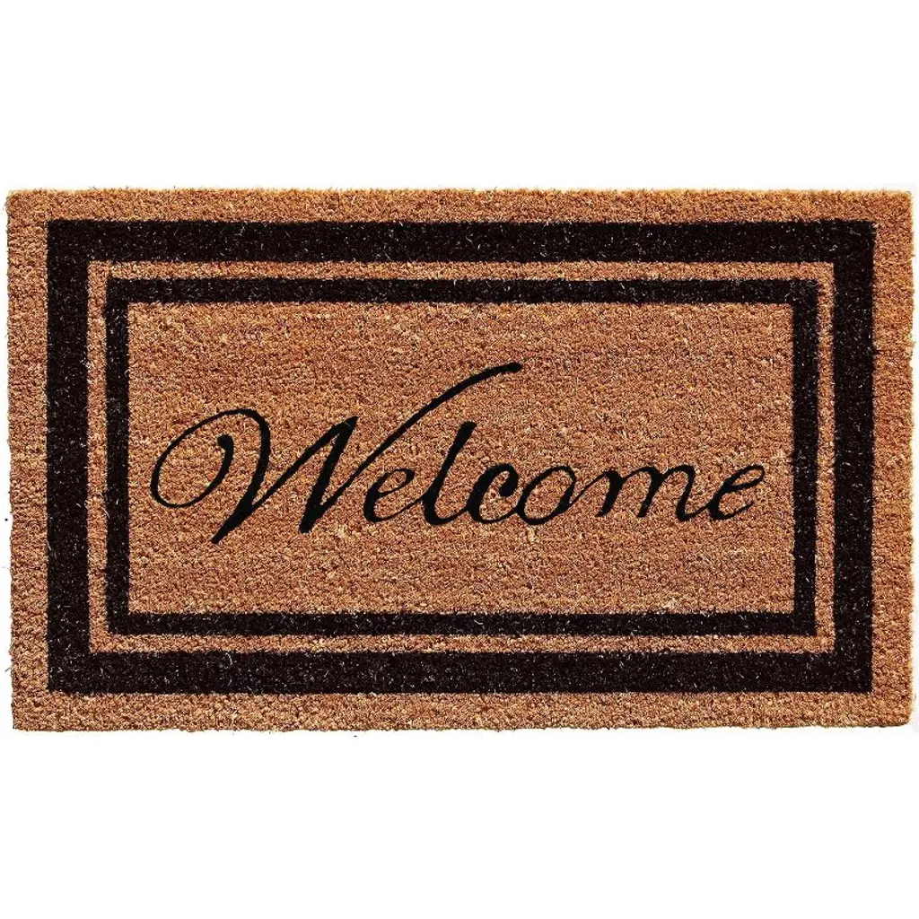 Rubber-Cal''s "Estate Style Welcome Doormat" is a natural coconut matting product that bring a warm welcome to any home doorway. This doormat is a charming centerpiece for the entrance to your home and adds a unique design to the aesthetic of the traditional front doormat. These coco coir mats contain a classic design, eco-friendly materials, and an abrasive coconut matting surface that will scrape away mess from incoming foot traffic. The natural brown color of the surface of this doormat brings an organic feel to any home or small business doorway at an affordable price. This durable front doormat gives your visitors a warm welcome as they step into your home. In addition to its timeless character, this decorative floor mat is also made from eco-friendly materials! This coconut matting is made mostly by hand and from dehusked coconuts, the fibers of which are woven together to shape these coco coir mats. As a result, these coco coir mats have very little impact on the environment. The same fibrous material that gives this welcome doormat its natural brown color also behaves as a scraping surface for incoming foot traffic. By removing unwanted liquids and debris from foot traffic to keep it from being tracked inside, this front doormat keeps your home clean and dry. Lined with PVC backing, this decorative floor mat can withstand the test of time with mold and mildew resistance that allows it to endure even the wettest conditions. When it comes to coco coir mats that provide a reliable, functional surface, our "Estate Style Welcome Doormat" is the perfect choice! Enhance the look of any front entryway with this eco-friendly approach to the traditional front doormat. Available in two convenient sizes, this coconut matting will provide a functional scraping surface while maintaining a low environmental profile. Try this friendly entryway addition and greet your guests with style today!
