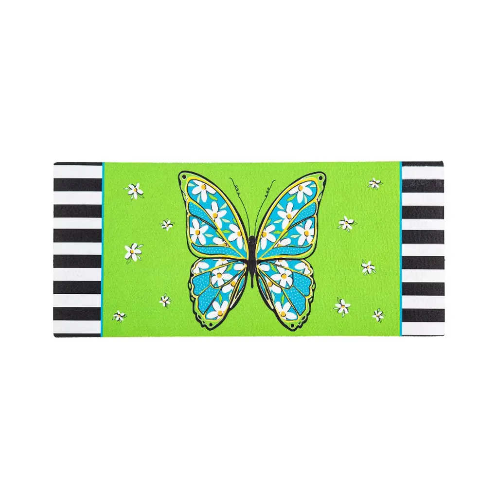 This Home Sweet Home Bee Sassafras Switch Mat adds style and function to any doorstep. Crafted from printed polyester with a rubber backing, this outdoor-safe mat is designed to fit neatly within our Sassafras bases and trays.