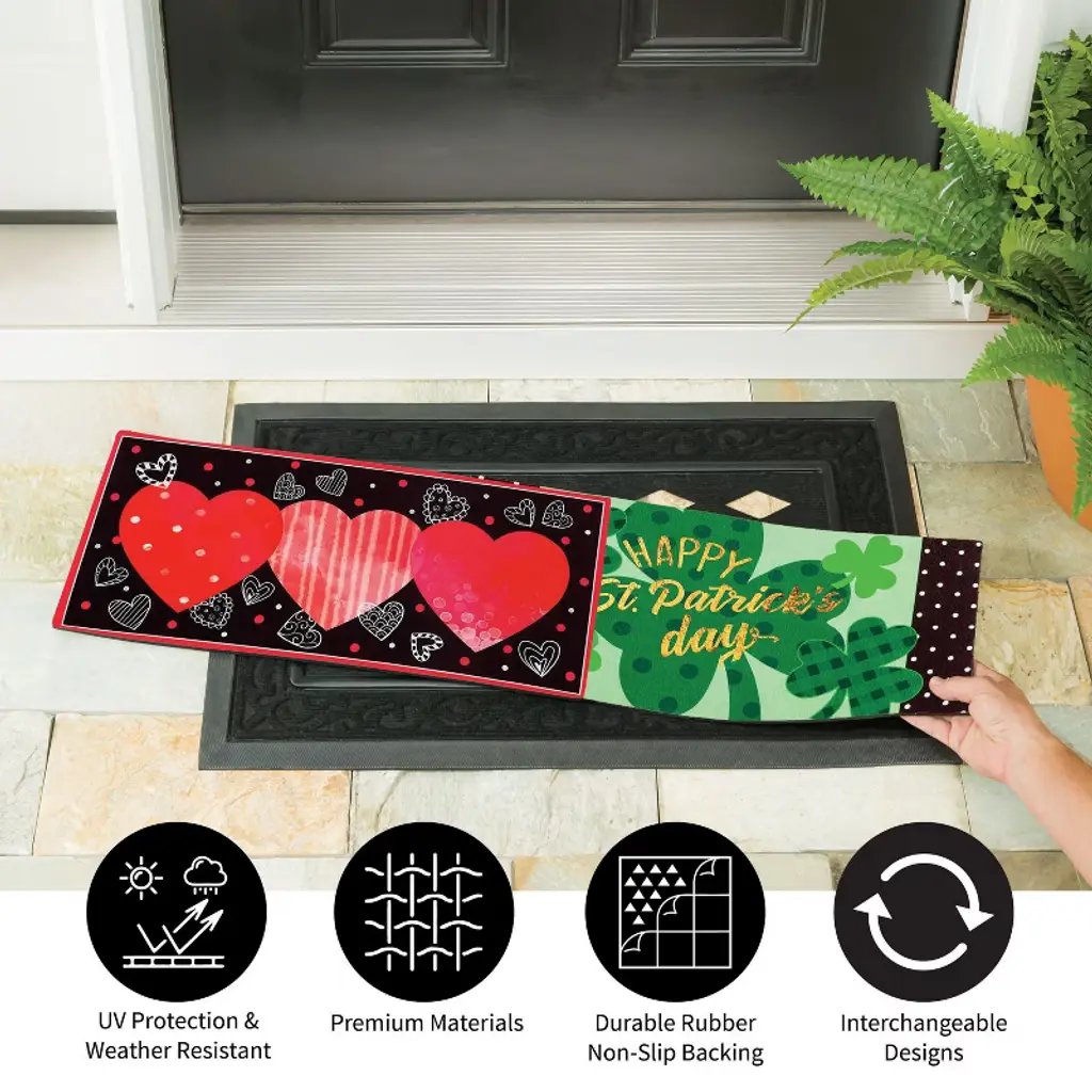 Evergreen Indoor Outdoor Doormat Bundle Set Of 5 - Frame And 4 Holiday Seasonal Inserts Valentine's Hearts Easter 4Th Of July And St. Patricks