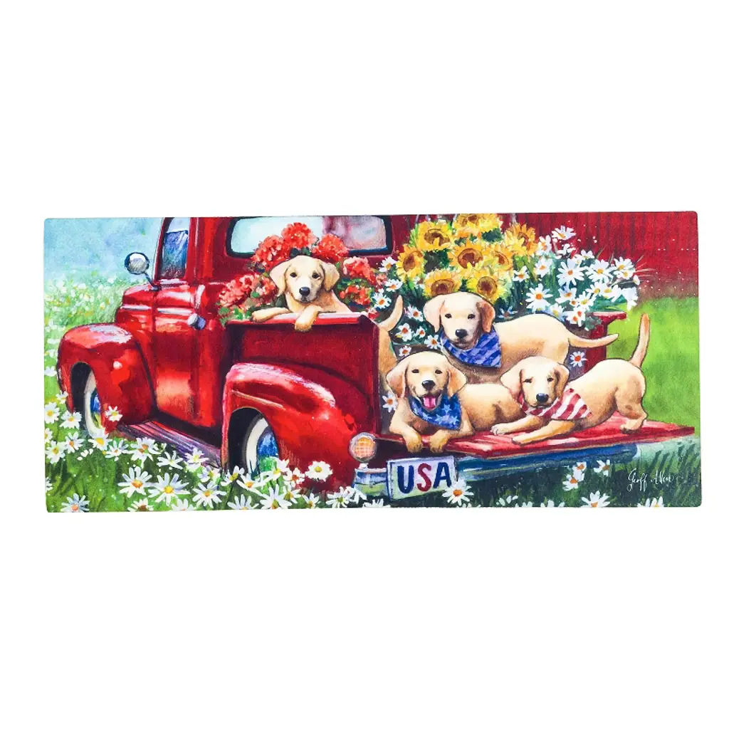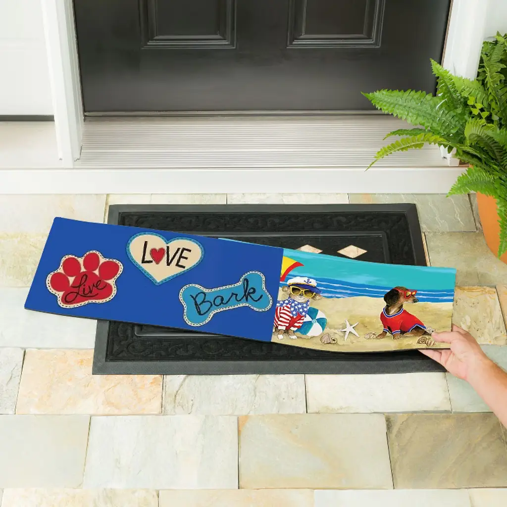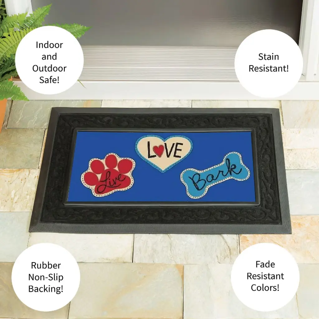 This beautiful set captures all the seasons. Easily switch up your seasonal style at your door step! Set a welcoming tone for guests and friends with this well made door mat and tray collection. Designed to pick up dirt and debris while adding unique flair to your entryway. Puuurfect for pet lovers this charming set features a bevy of dog-themed designs to delight! Mat tray included with 4 Sassafras Mats.