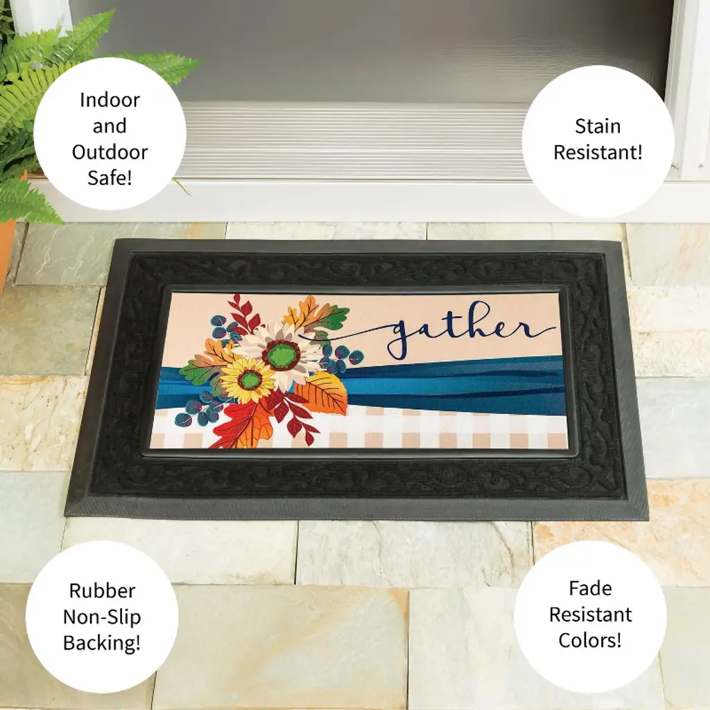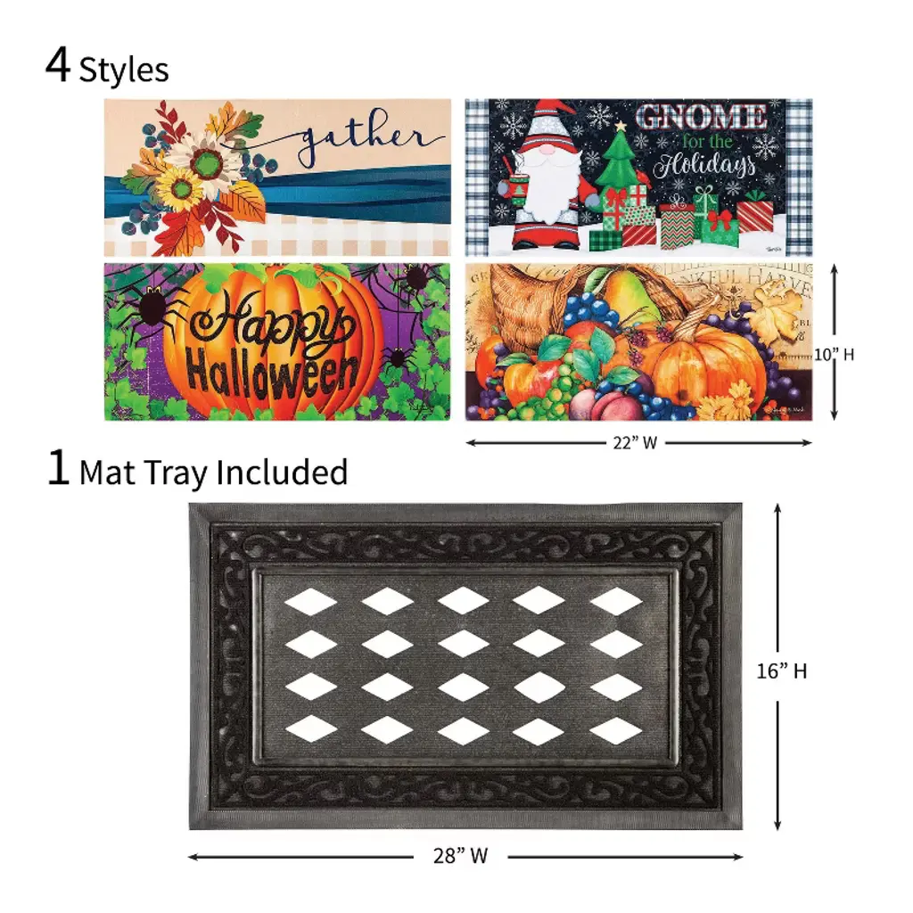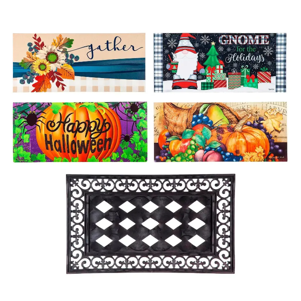 Evergreen Indoor Outdoor Doormat Bundle Set Of 5 - Frame And 4 Welcome Seasonal Inserts Halloween Pumpkin Gnome Gather Harvest Thanksgiving