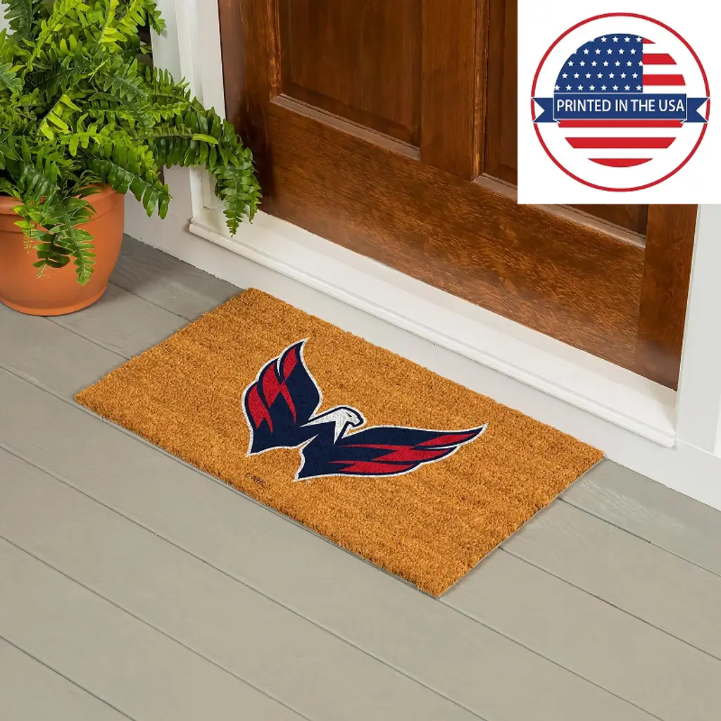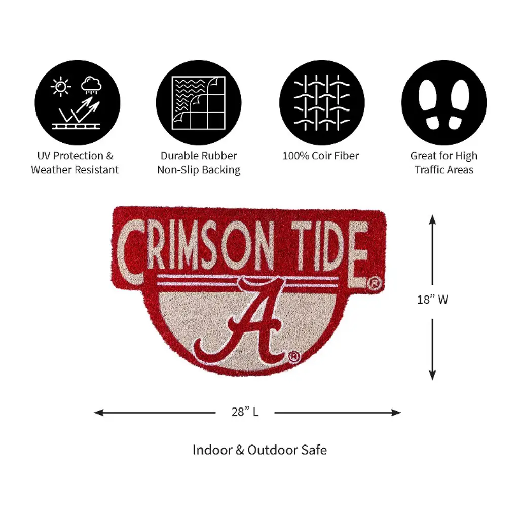 Your customers can display their team spirit with pride with this coir mat. The door mat is the perfect addition to any NCAA fan's front stoop! Crafted of natural coir, the mat has PVC backing to keep it in place and prevent slipping. Official team branding and school colors are printed directly onto the mats with durable, fade-resistant ink. Use under a covered area is recommended for longevity of the product.