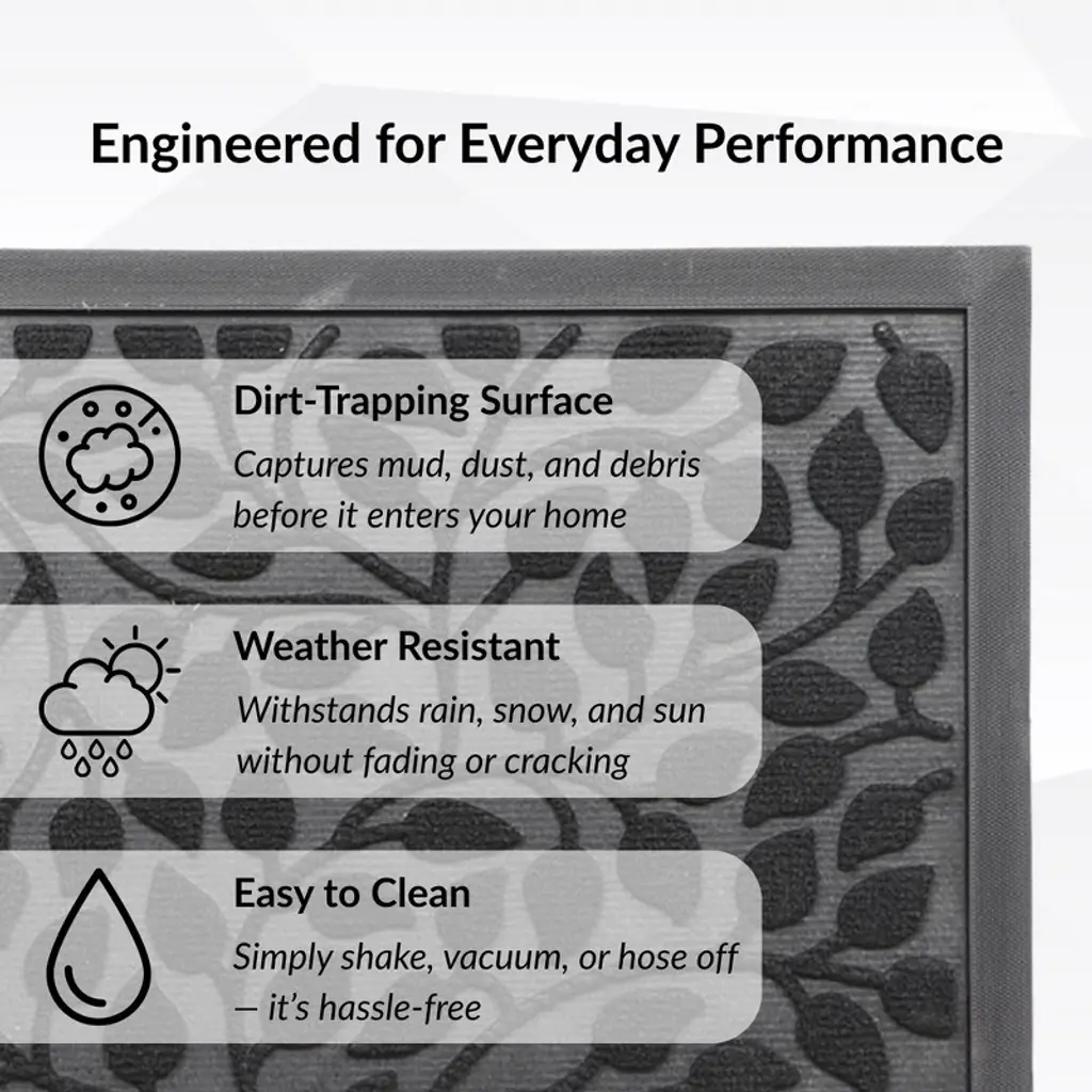 Evideco French Home Goods Black Heavy-duty Dirt-trapping Rubber Doormat With Raised Leaf Pattern