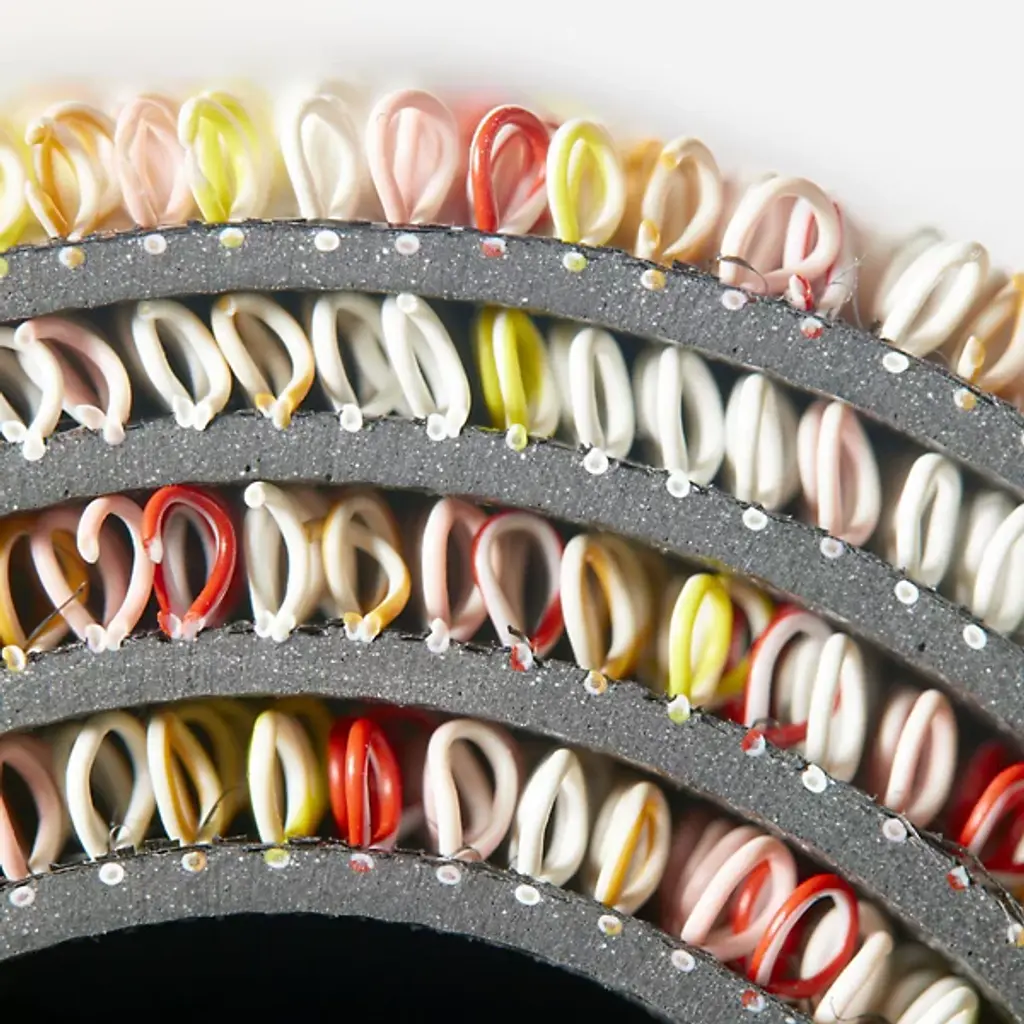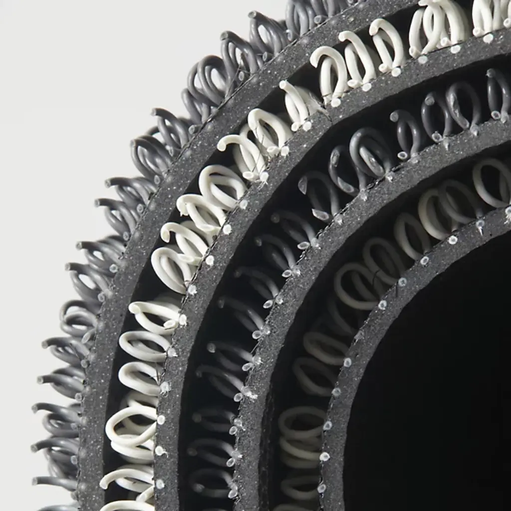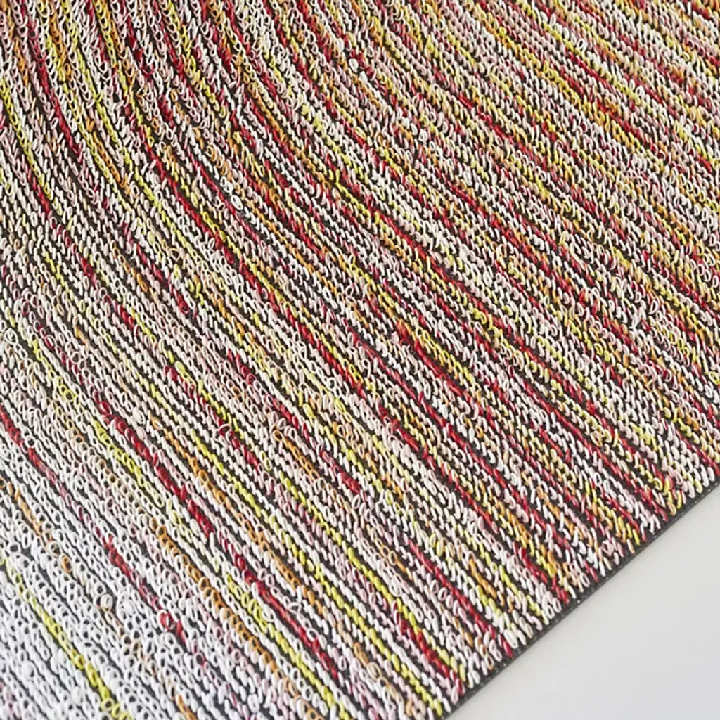 The Fade Stripe Shag Doormat is a contemporary piece by Sandy Chilewich and presented by Chilewich. It features a subtle gradient of monochromatic color schemes. Composed of Terrastrand yarns with 25% renewable vegetable content, it’s also quick drying, mold, mildew, and chlorine resistant, 100% phthalate-free, and made in the USA. It’s perfect for indoor or outdoor use and can blend into many décor schemes.