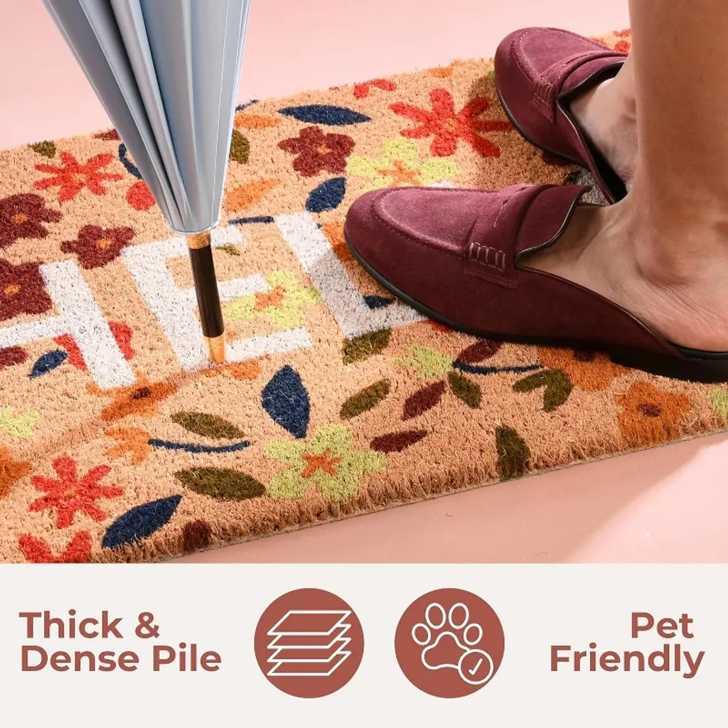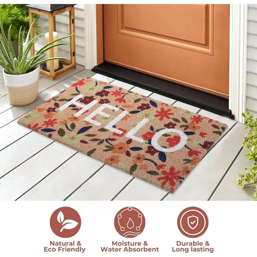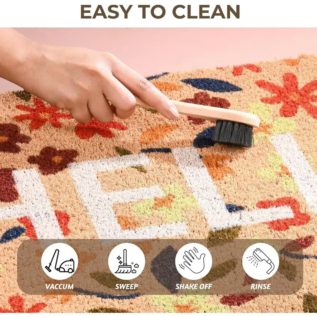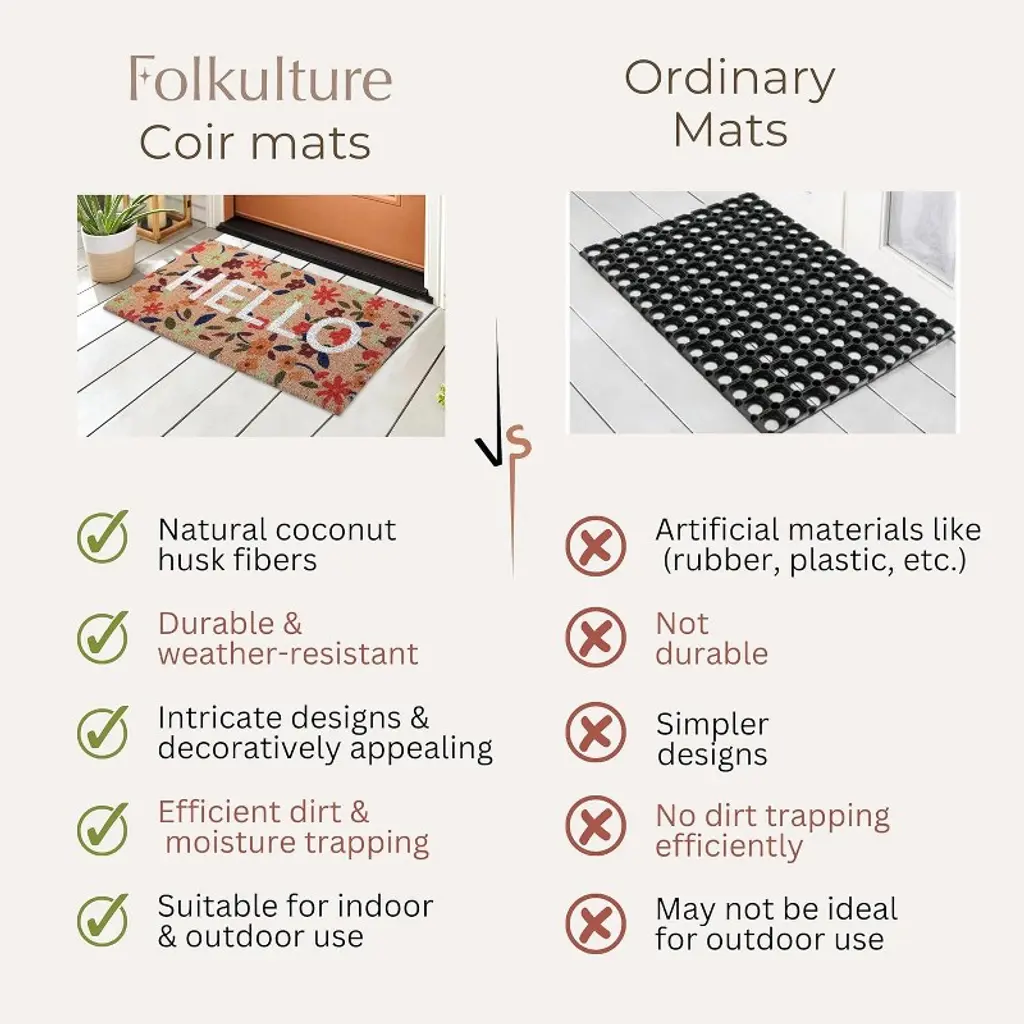 Folkulture coir mats or doormats are the perfect combination of style and sustainability. Crafted with care from the natural fiber of coconut husks, these eco-friendly mats are designed to make a lasting impression. Measuring 16 x 28 inches, these coir mats are perfectly sized for your front door, offering a warm welcome to all who enter. They boast exceptional moisture-absorbing and dust-trapping properties, ensuring that your floors stay clean and dry. But that's not all—our indoor door mats go the extra mile in terms of functionality. With an anti-slip latex backing, they provide a secure footing, preventing any accidents or slips. Safety is our priority, allowing you to confidently welcome guests into your home. Cleaning these mats is a breeze. Simply shake off any dirt or debris outside, or give them a quick sweep with a broom. For a more thorough clean, use a handheld vacuum or machine wash on a gentle cycle. The durability of these mats ensures they can withstand repeated washing without compromising their effectiveness. In addition to their practical benefits, these mats add a touch of natural elegance to your entrance. The rustic charm of the coconut husk fibers brings warmth and character to any doorstep. Folkulture Outdoor Mats for Front Door are built to last. They are constructed with durability in mind, capable of withstanding the elements, be it rain, snow, or sunshine. These mats are designed to serve you well, season after season.