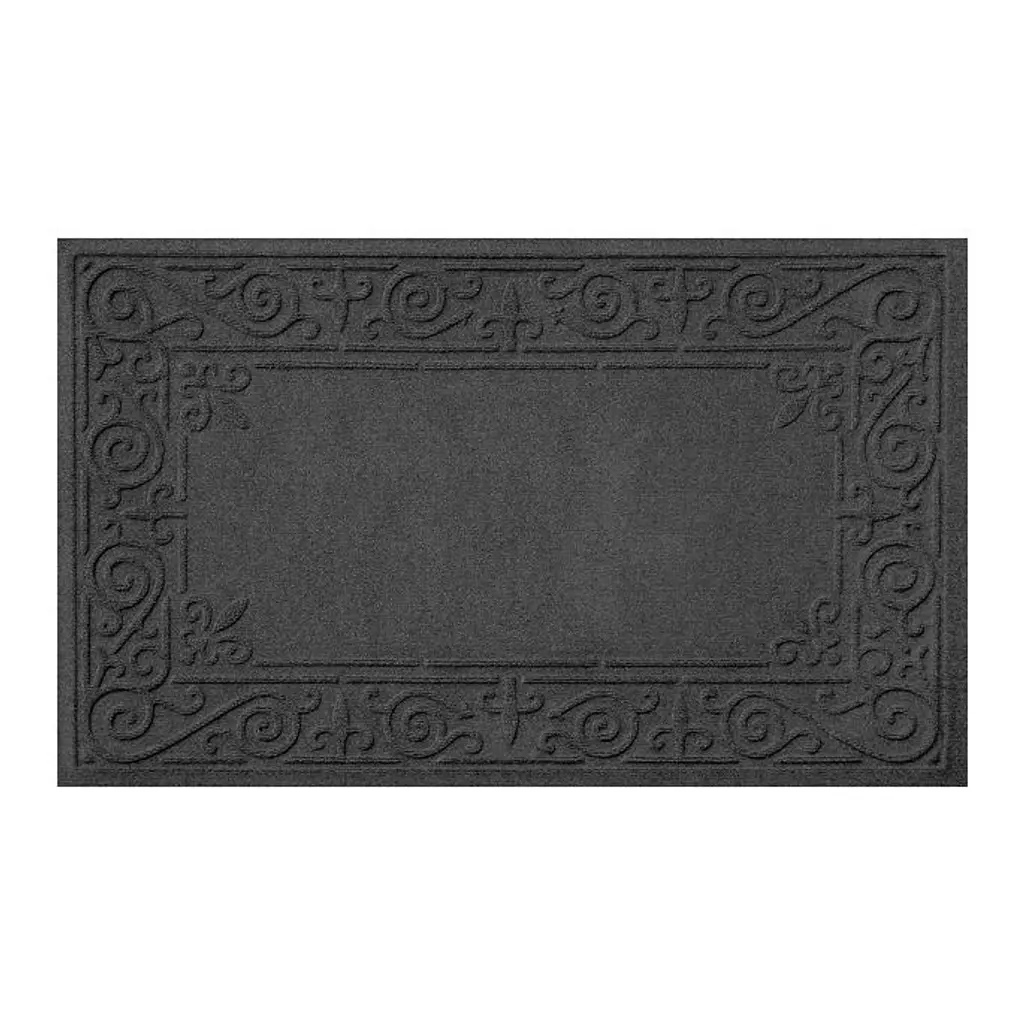 Over-sized for your large areas, this beautiful doormat is made of 100% rubber and is impervious to the elements of weather. Detailed scroll that emulates wrought iron, this heavy-duty mat makes a gorgeous addition to any porch or patio area. Hose clean.