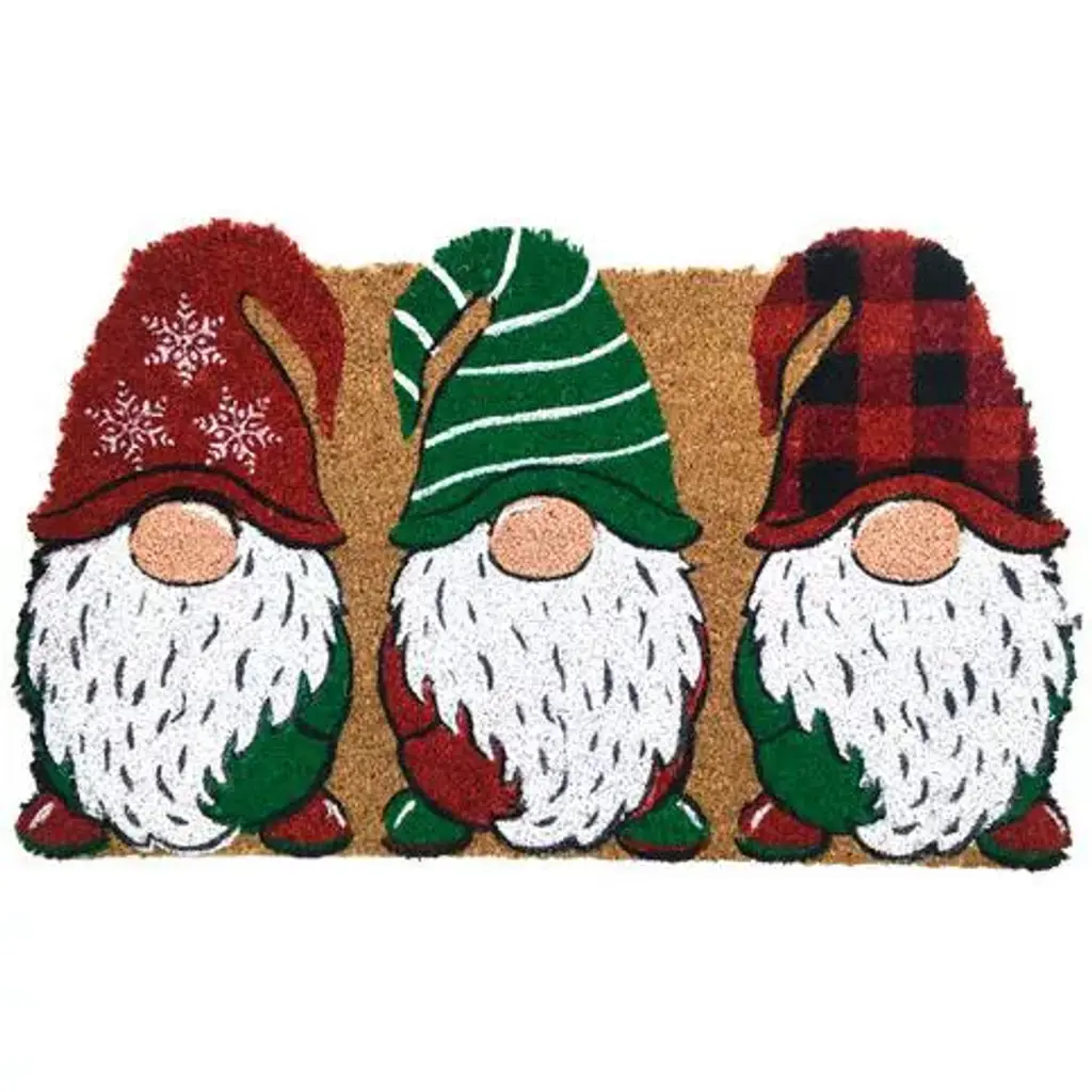 Add personality and style to your entryway with this doormat. With the unique designs lending a stylish appeal, the accent is a must-have for high-traffic areas. You can use it on your front porch, entryway, mudroom, garage, or patio. Product Features: Brown and red Gnome doormat Strong natural occurring fiber used to create stiff bristles Perfect for scraping dirt and mud from shoes and boots Natural fiber cells absorb water and capture dirt and debris keeping your floors safe from outdoor grime Half inch thick providing a lower profile to prevent tripping and provide an easy door clearance Nonslip polyvinyl chloride backing to prevent slipping and to keep your rug in place Perfect for front porch or entryway, used on patios, in a garage, and laundry room Can be used both indoors and outdoors Care instructions: shake briskly, to prevent fading place in a shaded area, staining may occur if placed on wet surface Dimensions: 18" wide x 30" long Material(s): polyvinyl chloride/coconut coir fiber
