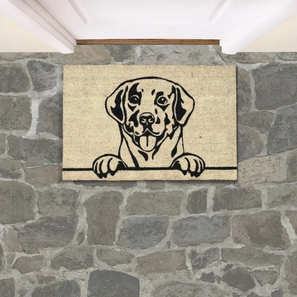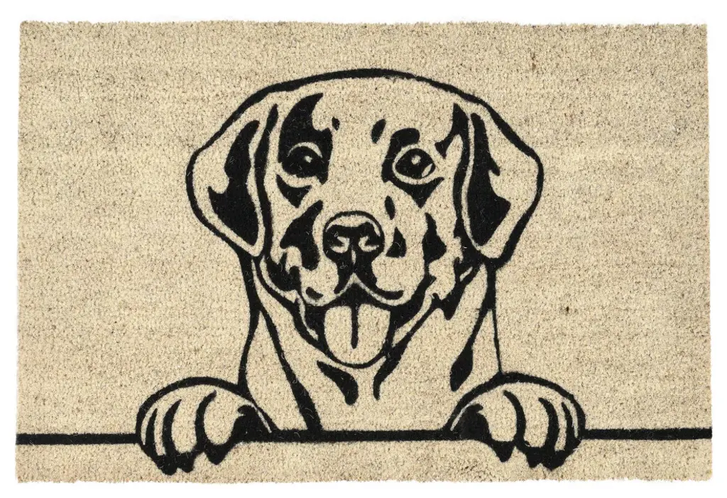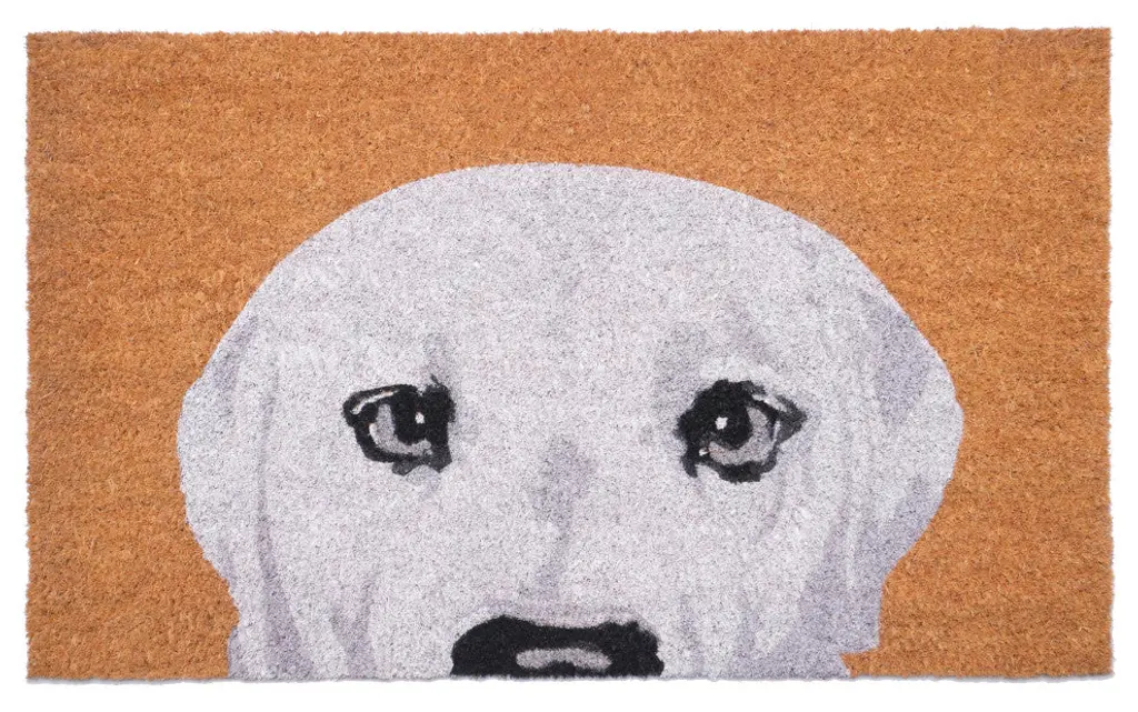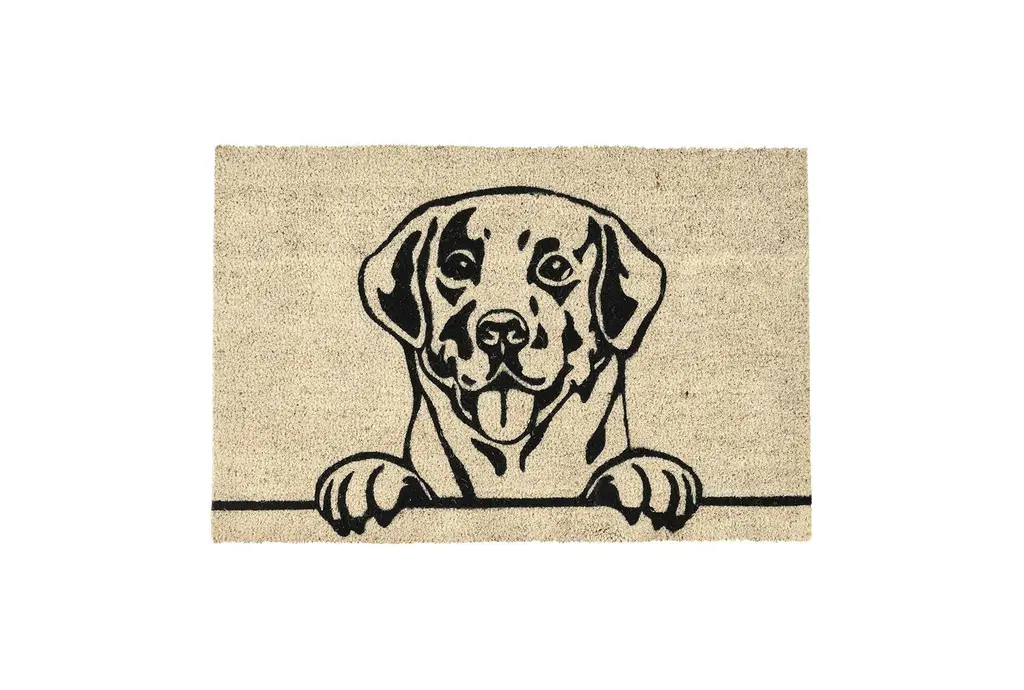 Charm family and friends with this playful rug, screen printed by hand with a cheerful pup. Crafted from sustainable and eco-friendly coconut husks this sand-colored rug offers lasting durability for high-traffic areas.Sand100% CoirScreen Printed by HandMade from Eco-friendly and Sustainable Coconut HuskTwo-tonePVC BackingRug Pad Not RequiredHigh TrafficGood Dog14mmNot ReversibleStyle: Contemporary, Modern, Transitional, EclecticCare Instructions: Remove soil with brush. Shake off any excess dirt. To prolong the life of your doormat, do not place it in direct sunlight or where it''s exposed to water.