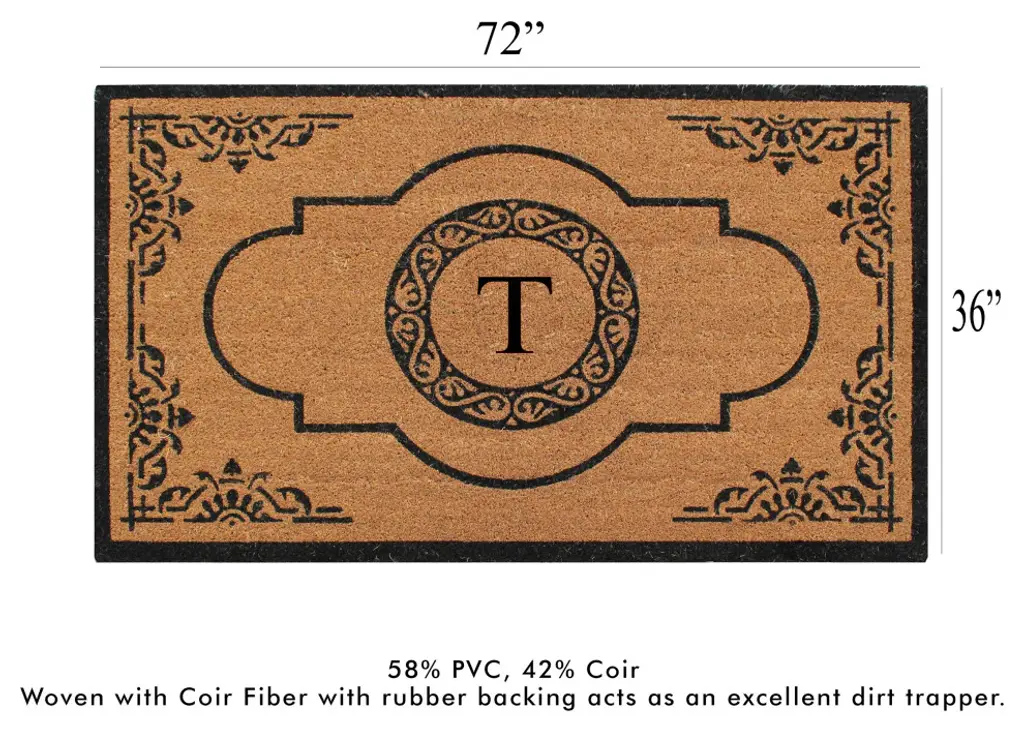 Hand Crafted Abrilina 36"x72" Coir Double Doormat Monogrammed, T