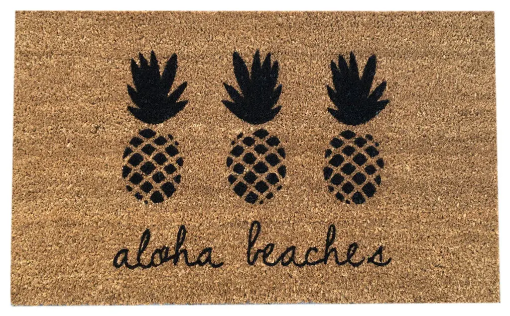 Our Aloha Beaches Pineapple'' doormat is the perfect way to create an inviting and charming entry way! Our welcome mats are hand- painted.- All of our mats are tan/natural brown in color. The natural coir fibers of the doormat are from the husk of the coconut which is mold and mildew resistant and have an extra- sturdy, thick vinyl backing to ensure they wont slide around, no matter the surface. Though we use all- weather paints and a UV sealant to ensure that your mat is perfect for your doorstep, we suggest that you keep your mat as dry as possible to avoid darkening of the fibers. To clean, simply shake out...easy as that! - This product is made to order. We do our best to process and ship standard orders as quickly as possible. Please observe lead times.