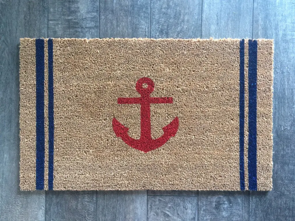 Hand Painted "Anchor" Welcome Mat, Red Anchor