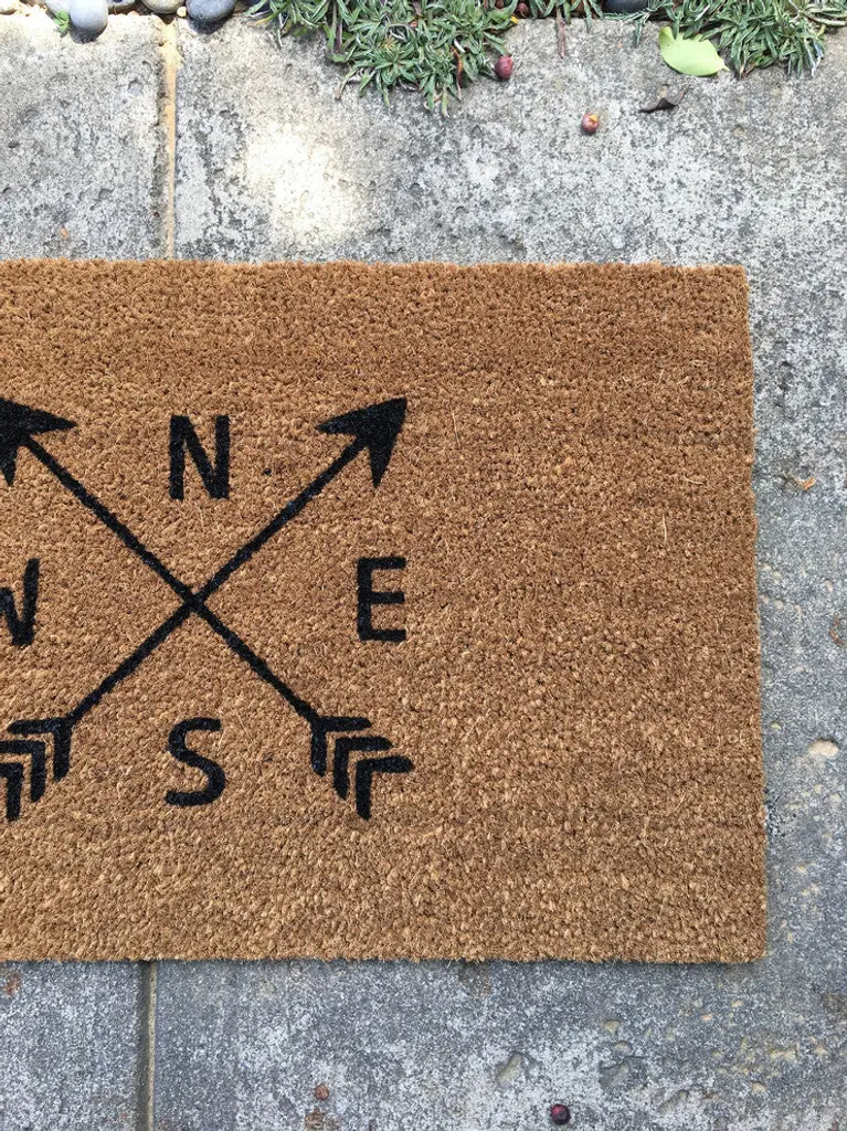 Our "This Way Home" doormat is the perfect way to create an inviting and charming entry way! Our welcome mats are hand-painted and each design is available in a wide variety of colors. We strongly recommend using a bold or dark color for this style, as it shows up best on the rough surface of the mat.All of our mats are tan/natural brown in color. The natural coir fibers of the doormat are from the husk of the coconut which is mold and mildew resistant and have an extra-sturdy, thick vinyl backing to ensure they won''t slide around, no matter the surface. Though we use all-weather paints and a UV sealant to ensure that your mat is perfect for your doorstep, we suggest that you keep your mat as dry as possible to avoid darkening of the fibers. To clean, simply shake out - easy as that!Please observe lead times as all our products are made to order.