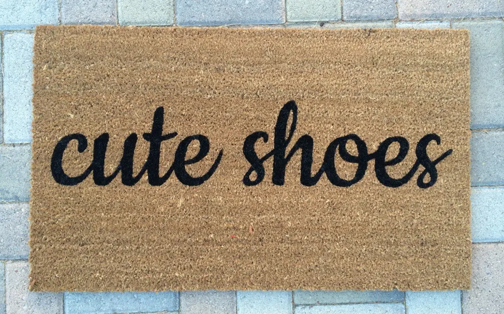 Hand Painted "Cute Shoes" Doormat, Troubled Times Gray