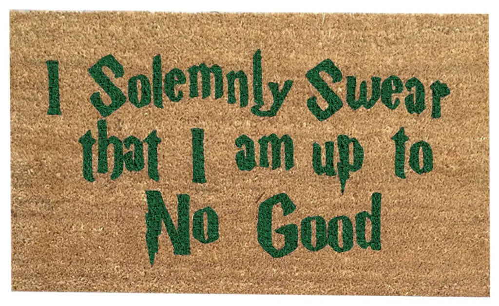 Our Potter themed doormats are the perfect way to create an inviting and fun entry way! Choose from the two designs shown in the listing photos: "I Solemnly Swear that I am Up To No Good" or "Mischief Managed". Our welcome mats are hand- painted and each design is available in a wide variety of colors. Dark colors highly recommended and show best on the rough surface of the mats.- All of our mats are tan/natural brown in color. The natural coir fibers of the doormat are from the husk of the coconut which is mold and mildew resistant and have an extra- sturdy, thick vinyl backing to ensure they wont slide around, no matter the surface. Though we use all- weather paints and a UV sealant to ensure that your mat is perfect for your doorstep, we suggest that you keep your mat as dry as possible to avoid darkening of the fibers. To clean, simply shake out...easy as that! - This product is made to order. We do our best to process and ship standard orders as quickly as possible. Please observe lead times. - Color Options: Black Soul, Bleeding Heart, Cherry Lips, Troubled Times Gray, Mr. Jones Orange, Lucky Charm Green, Kelly Green, Amazon Dark Green, Sophie Sky Blue, Pacific Blue, Midnight Dark Blue, CA Bear Brown, Jelly Dark Purple