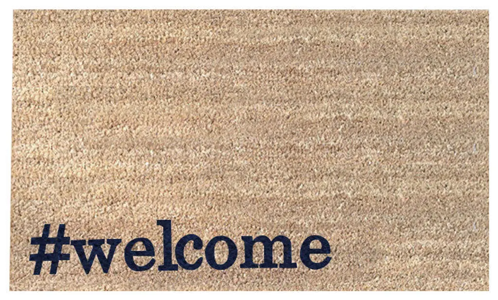 Hand Painted "Hashtag Welcome" Doormat, Sophie Sky Blue