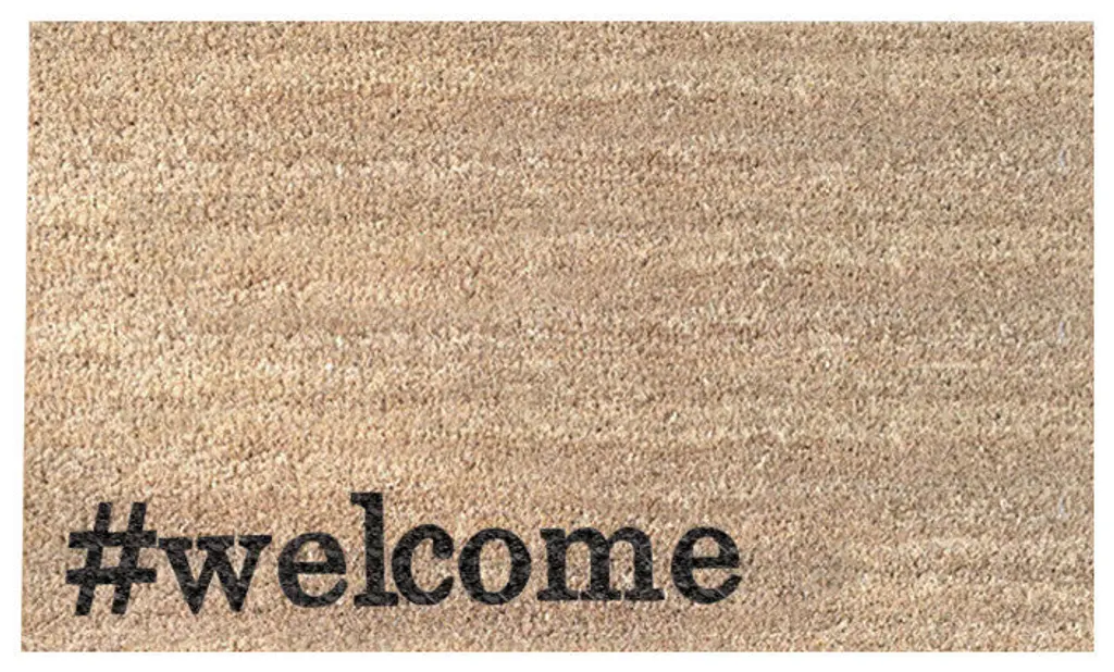 Our #welcome doormat is the perfect way to create an inviting and "trending" entry way! Our welcome mats are hand- painted and each design is available in a wide variety of colors.- All of our mats are tan/natural brown in color. The natural coir fibers of the doormat are from the husk of the coconut which is mold and mildew resistant and have an extra- sturdy, thick vinyl backing to ensure they wont slide around, no matter the surface. Though we use all- weather paints and a UV sealant to ensure that your mat is perfect for your doorstep, we suggest that you keep your mat as dry as possible to avoid darkening of the fibers. To clean, simply shake out...easy as that! - This product is made to order. We do our best to process and ship standard orders as quickly as possible. Please observe lead times. - Color Options: Black Soul, Troubled Times Gray, Bleeding Heart Red, Cherry Lips, Pretty in Pink, Mr. Jones Orange, Mustard Yellow, Popcorn Yellow, Daphne Dill Green, Lucky Charm Green, Kelly Green, Amazon Dark Green, Little Boy Blue, Breakfast at Tiffany Blue, Sophie Sky Blue , Pacific Blue, Midnight Dark Blue, Jelly Dark Purple, CA Bear Brown