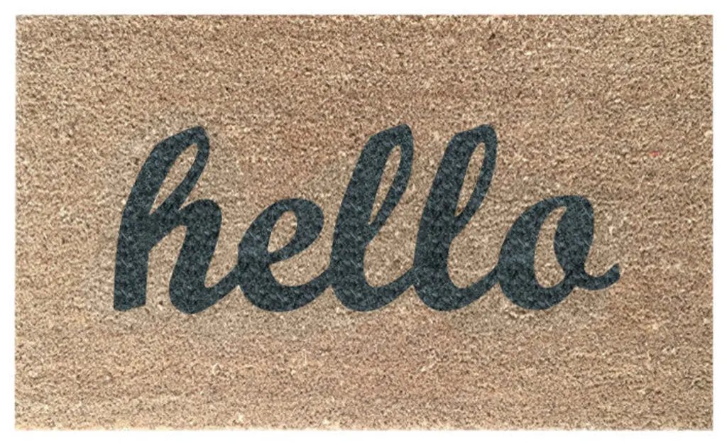 Our hello you. doormat is the perfect way to create an inviting and trendy entry way! Our welcome mats are hand- painted and each design is available in a wide variety of colors. - All of our mats are 18"x30" inches and tan/natural brown in color. The natural coir fibers of the doormat are from the husk of the coconut which is mold and mildew resistant and have an extra- sturdy, thick vinyl backing to ensure they wont slide around, no matter the surface. Though we use all- weather paints and a UV sealant to ensure that your mat is perfect for your doorstep, we suggest that you keep your mat as dry as possible to avoid darkening of the fibers. To clean, simply shake out...easy as that! - This product is made to order. We do our best to process and ship standard orders as quickly as possible. Please observe lead times. - Color Options: Black Soul, Gray, Red, Cherry Lips, Pretty in Pink, Jones Orange, Mustard Yellow, Popcorn Lt. Yellow, Dill Green, Lucky Charm Green, Kelly Green, Amazon Dk. Green, Bfast at Tiff. Blue, Sophie Sky Blue, Pacific Blue, Midnight Dk. Blue, Jelly Purple, Brown