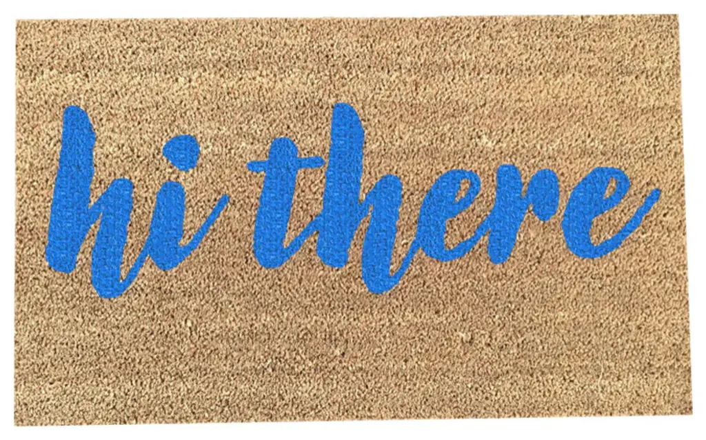 Our "hi there" doormat is the perfect way to create an inviting and trendy entry way! Our welcome mats are hand- painted and each design is available in a wide variety of colors. - All of our mats are 18"x30" and tan/natural brown in color. The natural coir fibers of the doormat are from the husk of the coconut which is mold and mildew resistant and have an extra- sturdy, thick vinyl backing to ensure they wont slide around, no matter the surface. Though we use all- weather paints and a UV sealant to ensure that your mat is perfect for your doorstep, we suggest that you keep your mat as dry as possible to avoid darkening of the fibers. To clean, simply shake out...easy as that! - Please view secondary image for swatch.