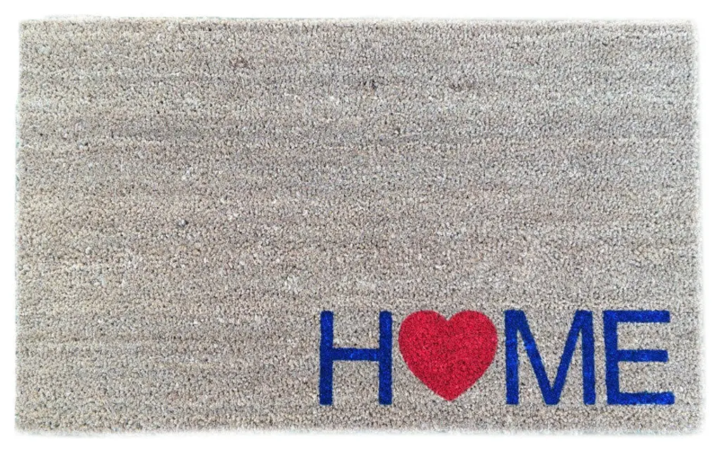 Our Heart and Home'' doormat is the perfect way to create an inviting and sweet entry way! Our welcome mats are hand- painted with care to ensure your guests are greeted with a cute and patriotic vibe!! Available with your choice of a heart or paw in the design. - All of our mats are tan/natural brown in color. The natural coir fibers of the doormat are from the husk of the coconut which is mold and mildew resistant and have an extra- sturdy, thick vinyl backing to ensure they wont slide around, no matter the surface. Though we use all- weather paints and a UV sealant to ensure that your mat is perfect for your doorstep, we suggest that you keep your mat as dry as possible to avoid darkening of the fibers. To clean, simply shake out...easy as that! - This product is made to order. We do our best to process and ship standard orders as quickly as possible. Please observe lead times. - Color Options: , Blue/Red Heart-photo, Black Soul, Troubled Times Gray, Bleeding Heart Red, Cherry Lips Red, Pretty in Pink, Mr. Jones Orange, Min. Mustard Yellow, Popcorn Yellow, Daphne Dill Green, Lucky Charm Green, Kelly Green, Amazon Dark Green, Little Boy Blue, Bfast atTiffany Blue, Sophie Sky Blue, Pacific Blue, Midnight Dark Blue, Pikkas Lt. Purple, Jelly Dk. Purple, CA Bear Brown