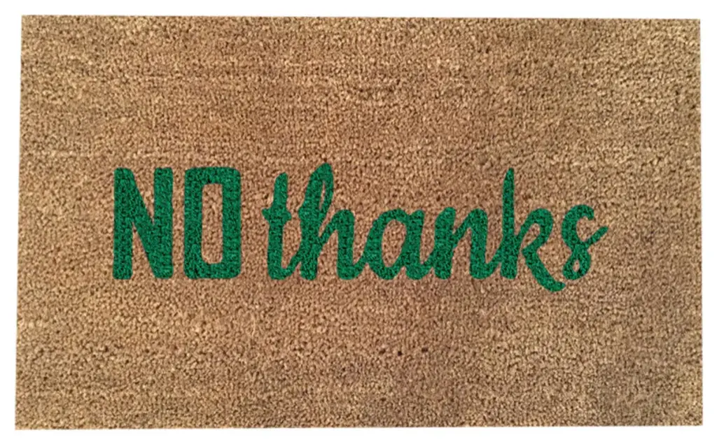 Hand Painted "No Thanks" Welcome Mat, Kelly Green