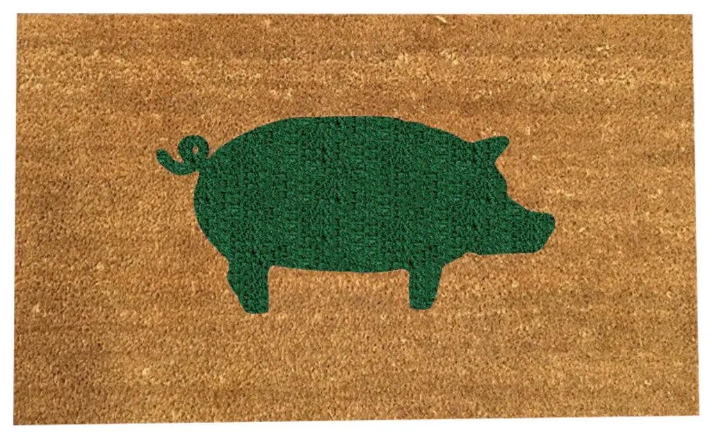Hand Painted "Pig" Doormat, Amazon Dark Green