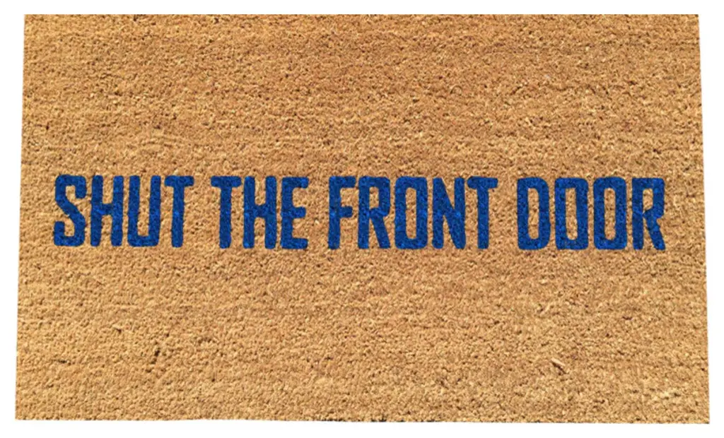 Our "Shut the Front Door!" doormat is the perfect way to convey your style and humor to your guests! Our welcome mats are hand-painted and each design is available in a wide variety of colors.All of our mats are tan/natural brown in color. The natural coir fibers of the doormat are from the husk of the coconut which is mold and mildew resistant and have an extra-sturdy, thick vinyl backing to ensure they won''t slide around, no matter the surface. Though we use all-weather paints and a UV sealant to ensure that your mat is perfect for your doorstep, we suggest that you keep your mat as dry as possible to avoid darkening of the fibers. To clean, simply shake out - easy as that!Please observe lead times as all our products are made to order.