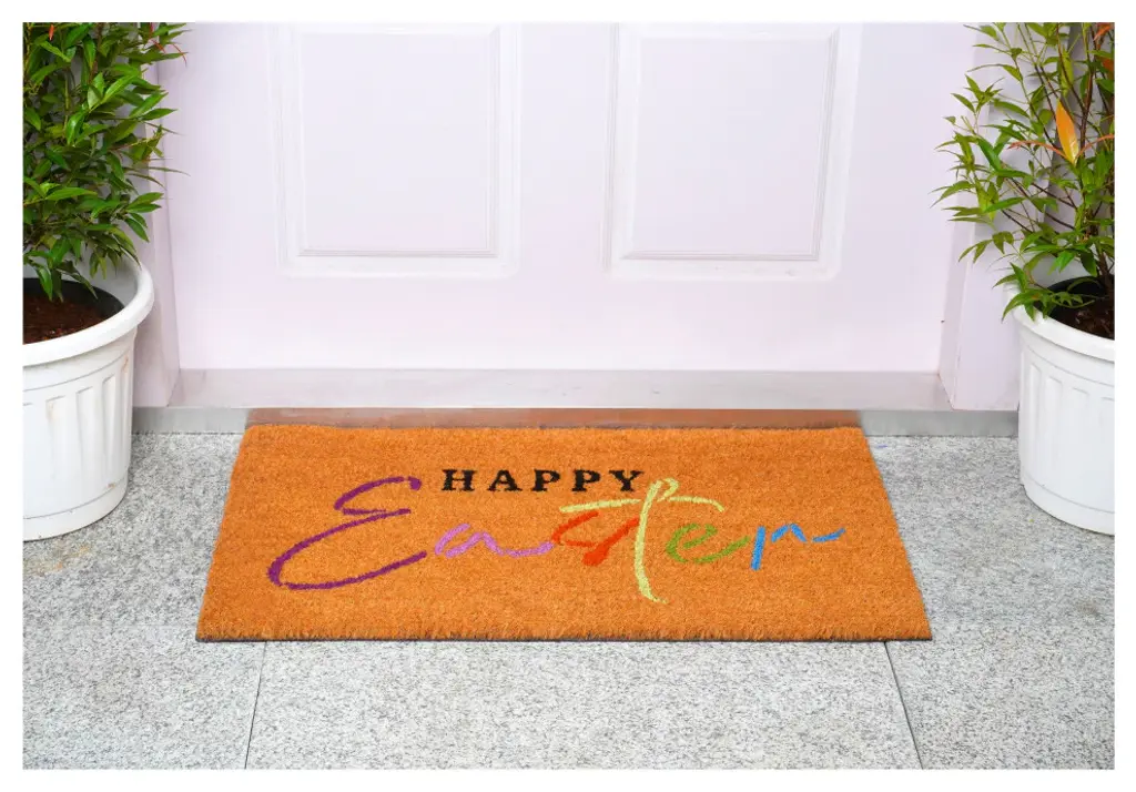 Enhance your entry or patio area with a new doormat that fits your decor and personality. Made of natural coir, a durable, dense fiber that scrapes shoes clean, this mat is vinyl backed for increased durability and to help prevent movement. Weather tolerant and colorfast, coir doormats absorb moisture, retain their shape and will not mat down regardless of the traffic. Vacuum, sweep or lightly hose clean.