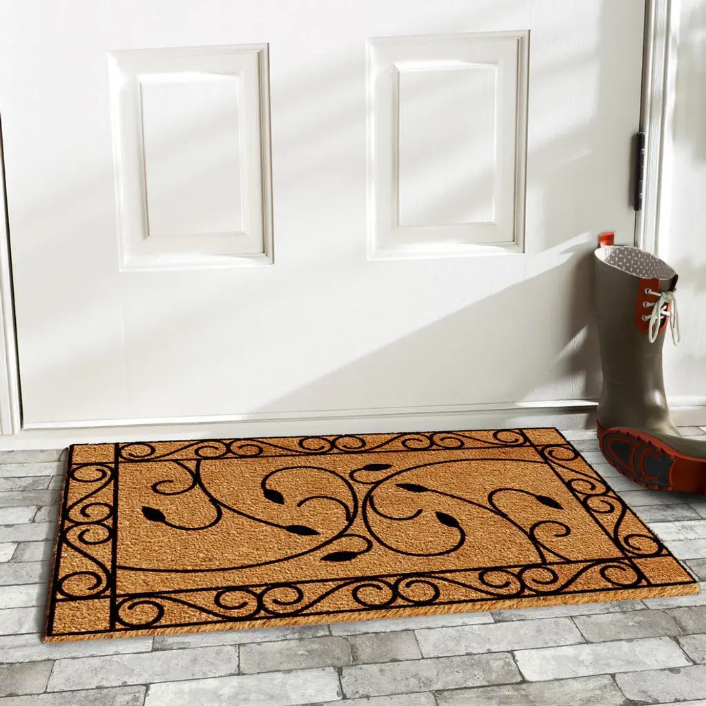 Made of natural coir, a dense fiber that is naturally mold and mildew resistant. Coir is a renewable resource that is durable and coarse, excellent for scraping shoes clean. Vinyl backed for increased durability and to help prevent movement, coir doormats are weather tolerant absorb moisture and retain their shape. For best results keep in a sheltered area such as a covered porch, keeping extreme moisture and sunlight to a minimum. Vacuum, sweep or lightly hose clean.