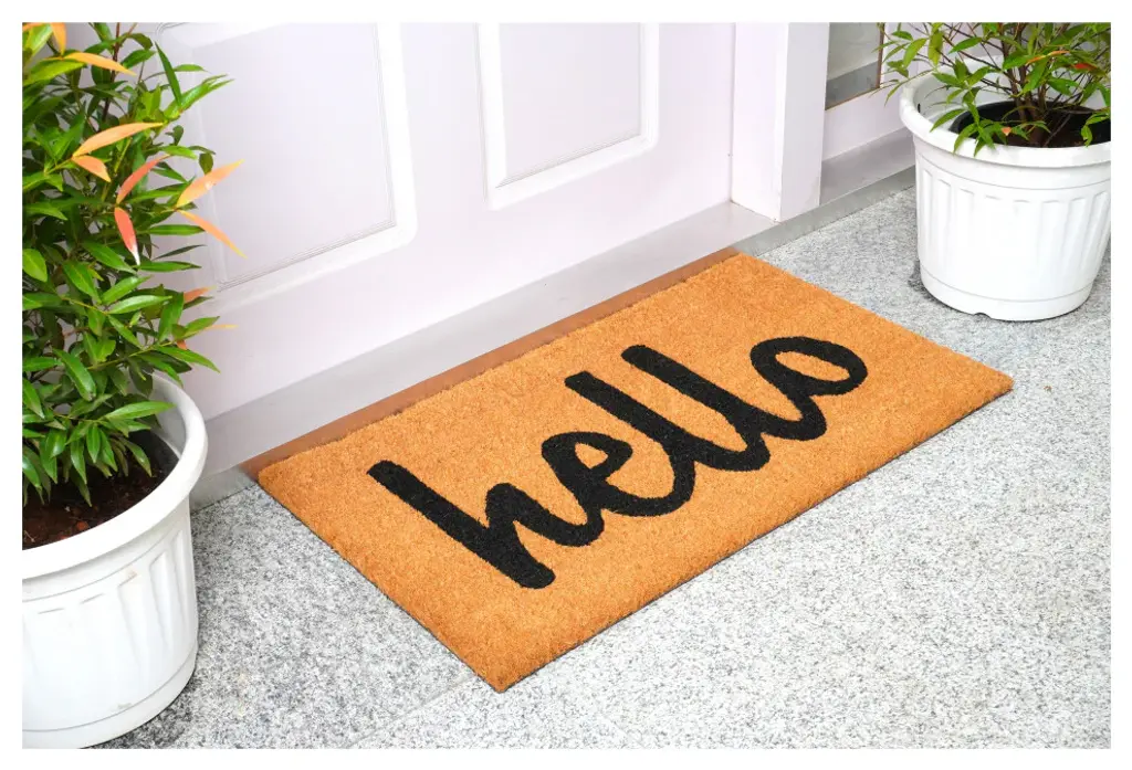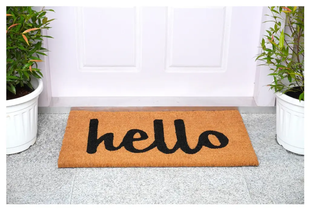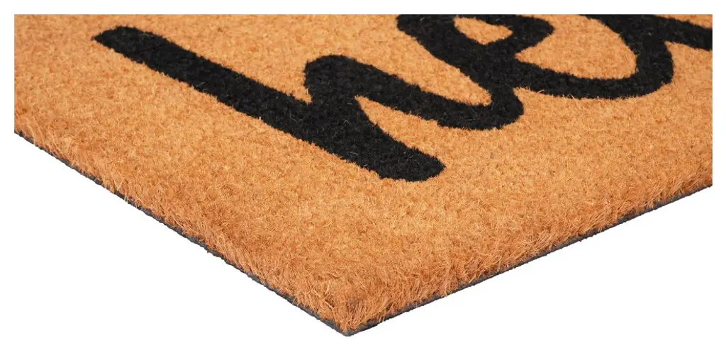 Enhance your entry or patio area with a new doormat that fits your decor and personality. Made of natural coir, a durable, dense fiber that scrapes shoes clean, this mat is vinyl backed for increased durability and to help prevent movement. Weather tolerant and colorfast, coir doormats absorb moisture, retain their shape and will not mat down regardless of the traffic. Vacuum, sweep or lightly hose clean.