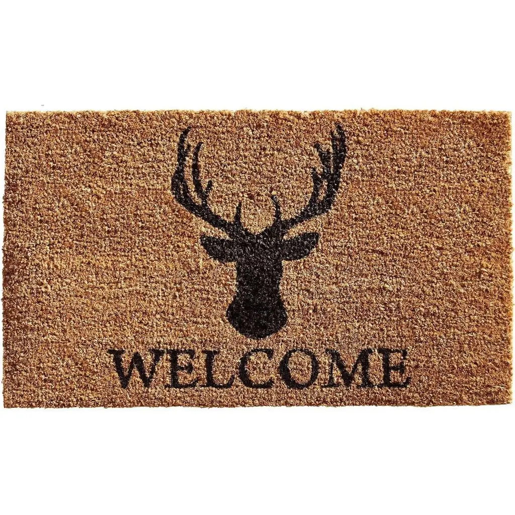 Enhance your entry or patio area with a new doormat that fits your decor and personality. Made of natural coir, a durable, dense fiber that scrapes shoes clean, this mat is vinyl backed for increased durability and to help prevent movement. Weather tolerant and colorfast, coir doormats absorb moisture, retain their shape and will not mat down regardless of the traffic. Vacuum, sweep or lightly hose clean.