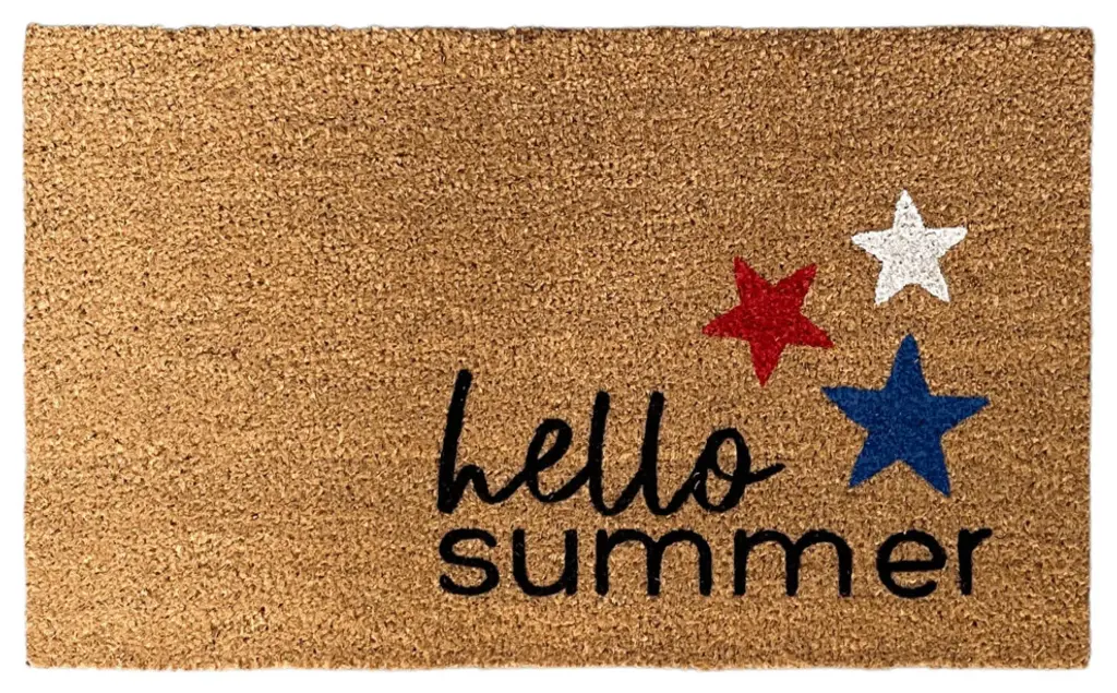 This hand-painted summer doormat makes an ideal housewarming gift for newlyweds or your friends.Each welcome mat is hand painted and made to order. All our doormats are standard size, 18 x 30 inches to fit most doors. We hand paint your doormat in the USA and they are carefully crafted from natural coir fibers for mold, mildew resistance. Each mat has an extra durable, thick vinyl backing ensures no dangerous slippage when used.The perfect custom doormat for a warm, bright holiday theme.Create an inviting, personalized entry way for your home.Please see: Each doormat is handmade, therefore, you may see a slight variation but this does not constitute a defect.CARE: We suggest that you keep your mat as dry as possible to avoid darkening of the fibers. To clean, simply shake out easy as that!