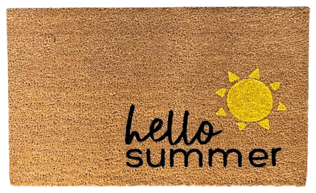 This hand-painted doormat makes an ideal housewarming gift for newlyweds or your friends.Each welcome mat is hand painted and made to order. All our doormats are standard size, 18 x 30 inches to fit most doors. We hand paint your doormat in the USA and they are carefully crafted from natural coir fibers for mold, mildew resistance. Each mat has an extra durable, thick vinyl backing ensures no dangerous slippage when used.The perfect custom doormat for a warm, bright summer theme.Create an inviting, personalized entry way for your home.Please see: Each doormat is handmade, therefore, you may see a slight variation but this does not constitute a defect.CARE: We suggest that you keep your mat as dry as possible to avoid darkening of the fibers. To clean, simply shake out easy as that!