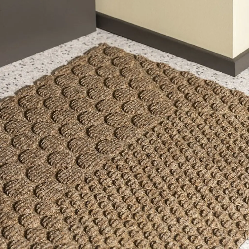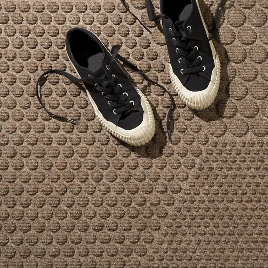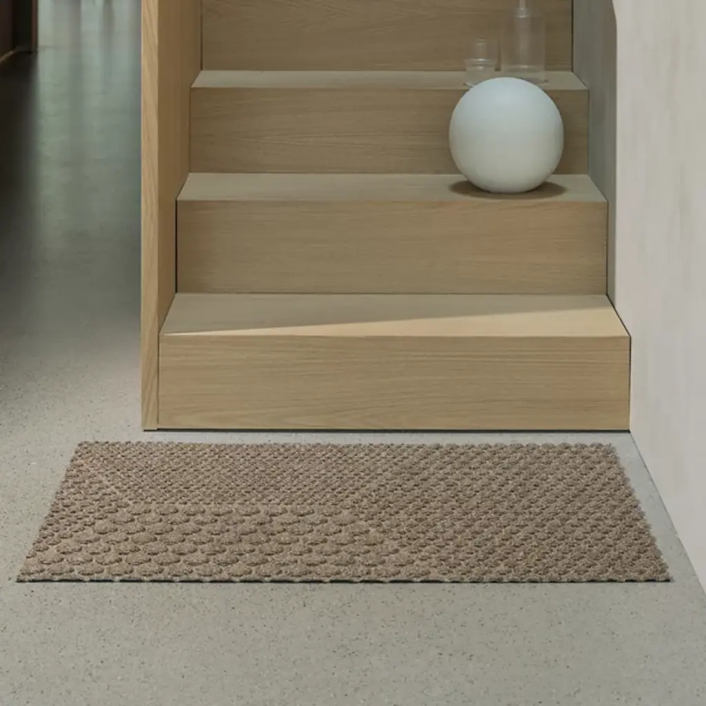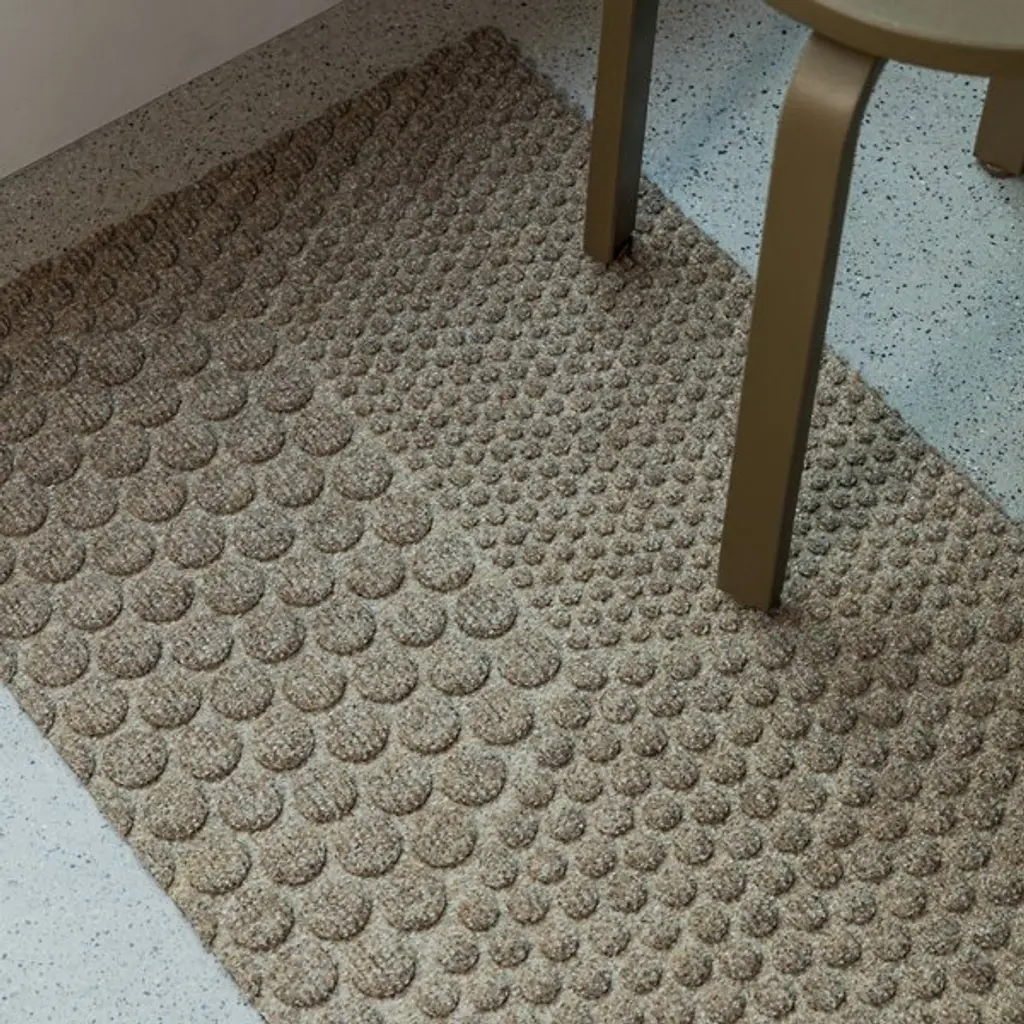 Gorgeous geometry defines the contemporary Hex Doormat by Heymat. Designed by Vera & Kyte, it uses repeating rounded discs to compose polygonal shapes in graphic patterns underfoot, catching dirt in angular intersections. An anti-slip rubber backing helps the mat stay firmly in place indoors or out, while its polypropylene constitution and entrancing texture provide a stylish first impression at thresholds.