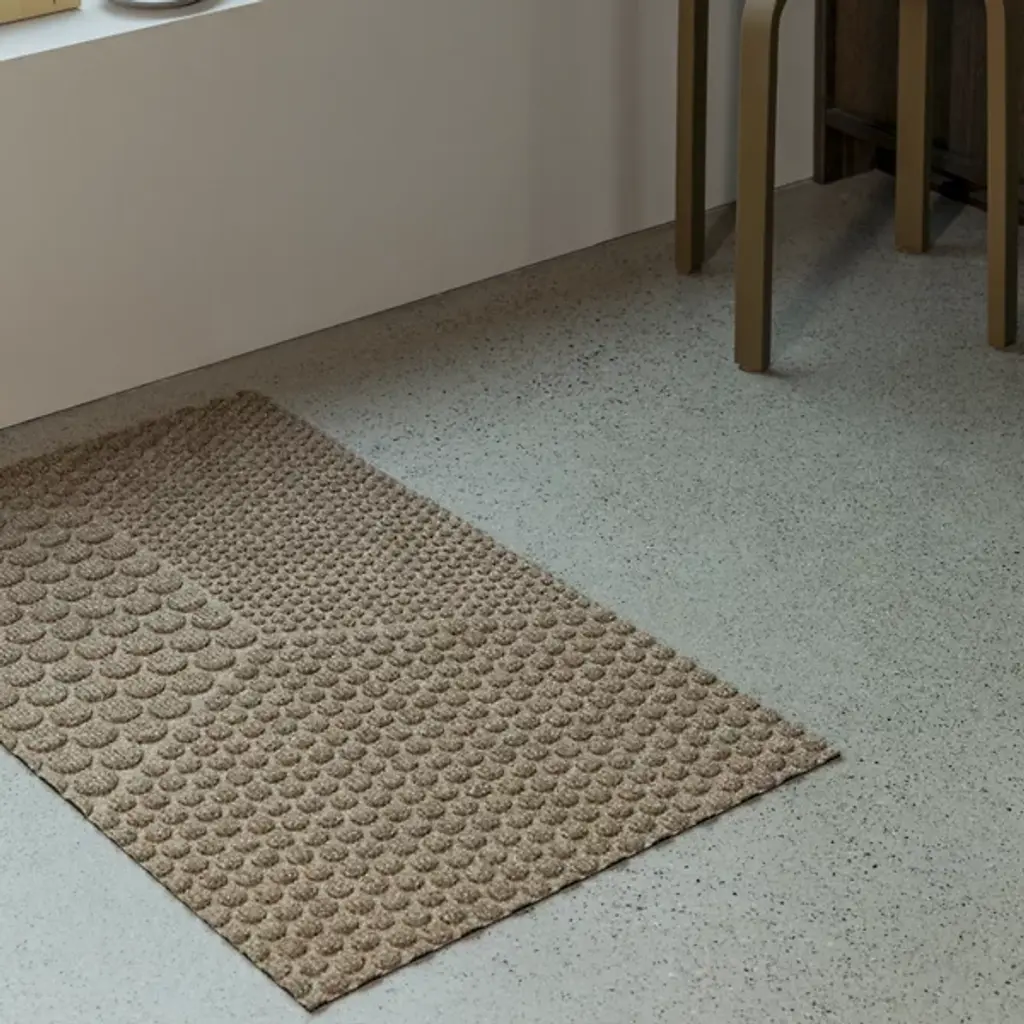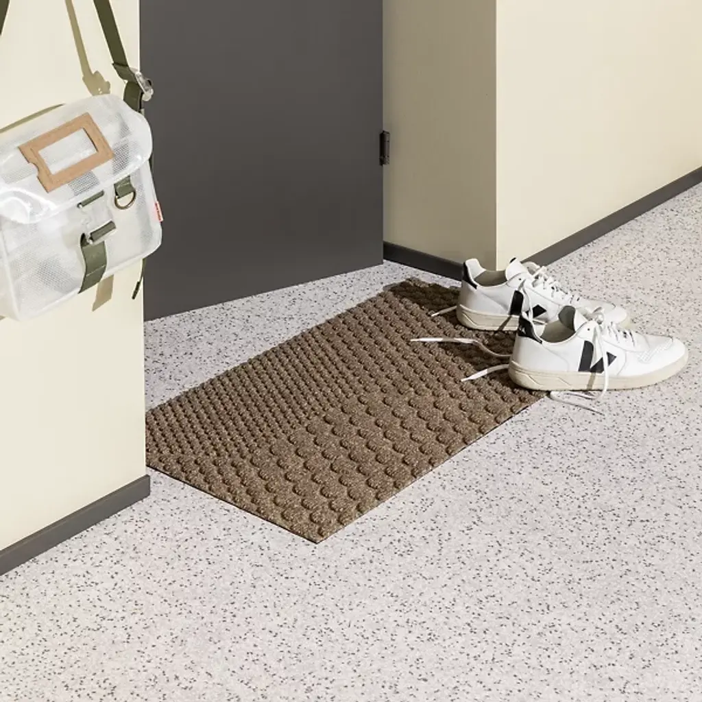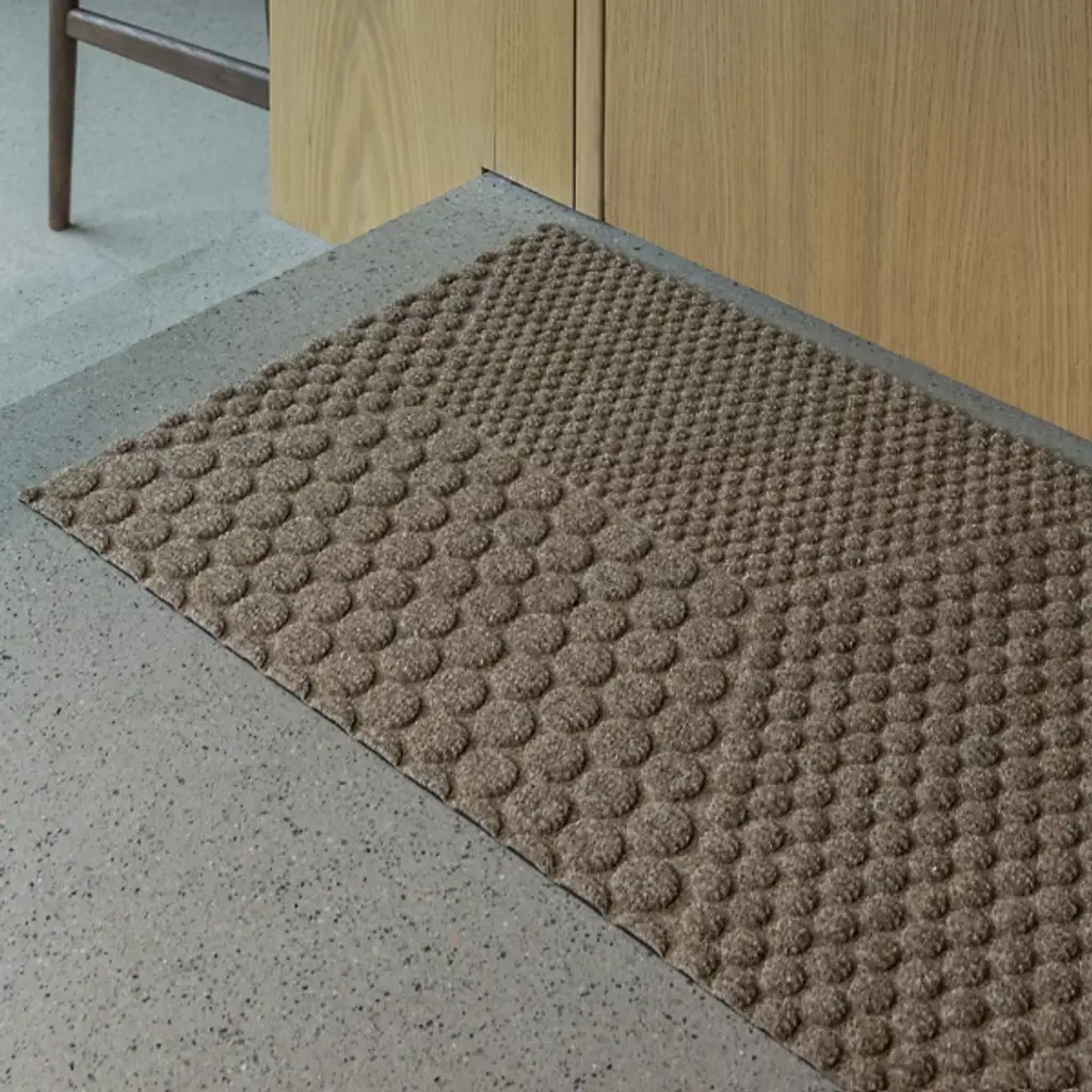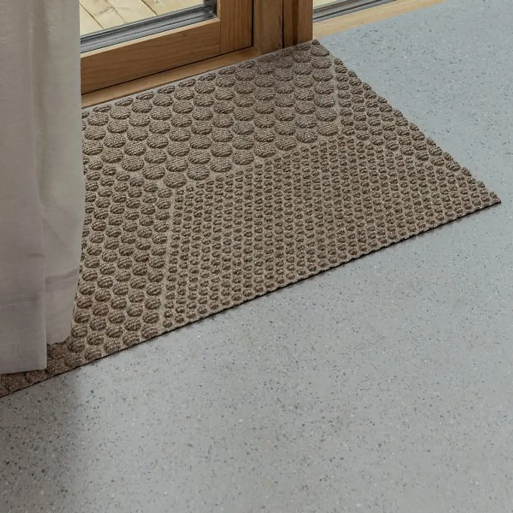 Gorgeous geometry defines the contemporary Hex Doormat by Heymat. Designed by Vera & Kyte, it uses repeating rounded discs to compose polygonal shapes in graphic patterns underfoot, catching dirt in angular intersections. An anti-slip rubber backing helps the mat stay firmly in place indoors or out, while its polypropylene constitution and entrancing texture provide a stylish first impression at thresholds.