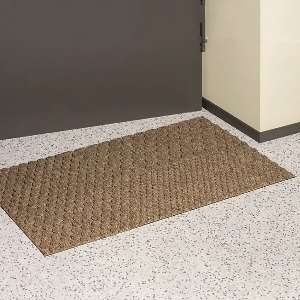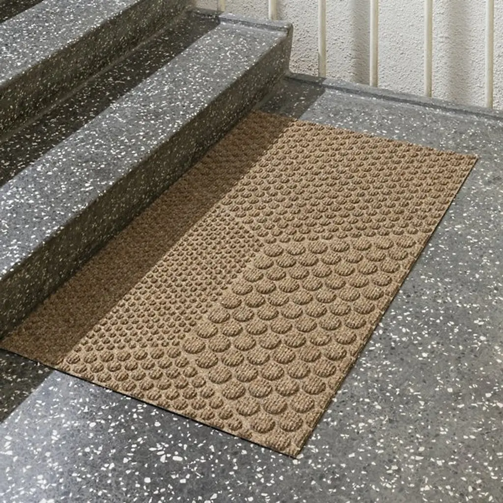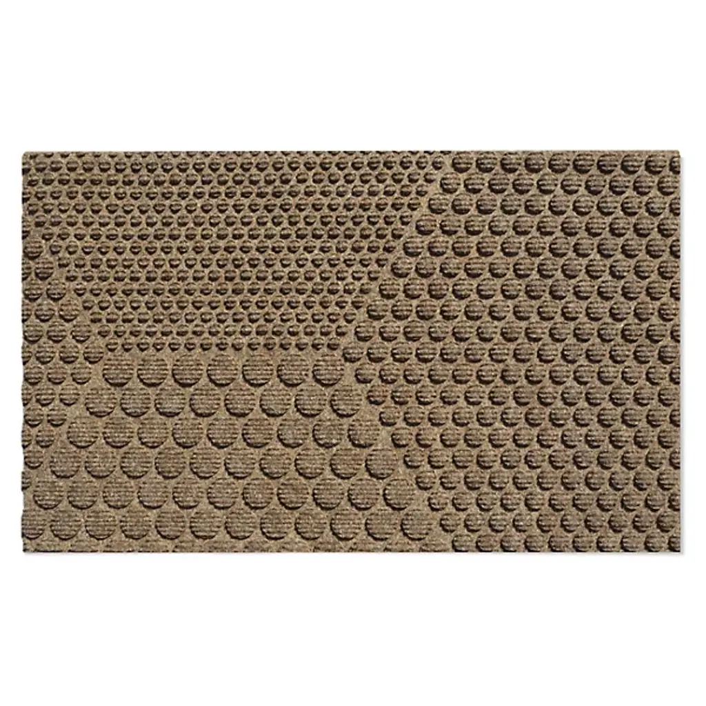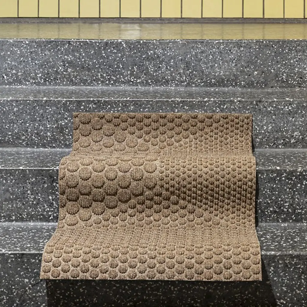 Gorgeous geometry defines the contemporary Hex Doormat by Heymat. Designed by Vera & Kyte, it uses repeating rounded discs to compose polygonal shapes in graphic patterns underfoot, catching dirt in angular intersections. An anti-slip rubber backing helps the mat stay firmly in place indoors or out, while its polypropylene constitution and entrancing texture provide a stylish first impression at thresholds.