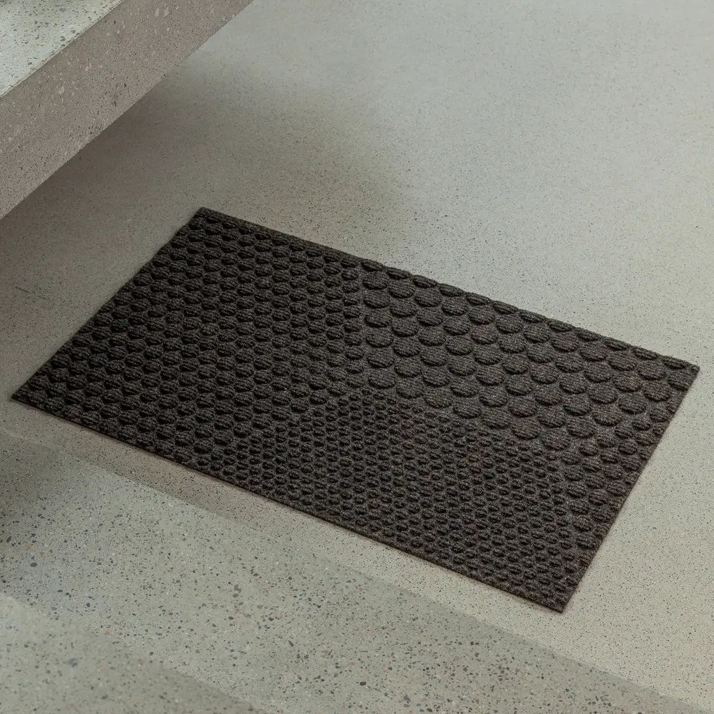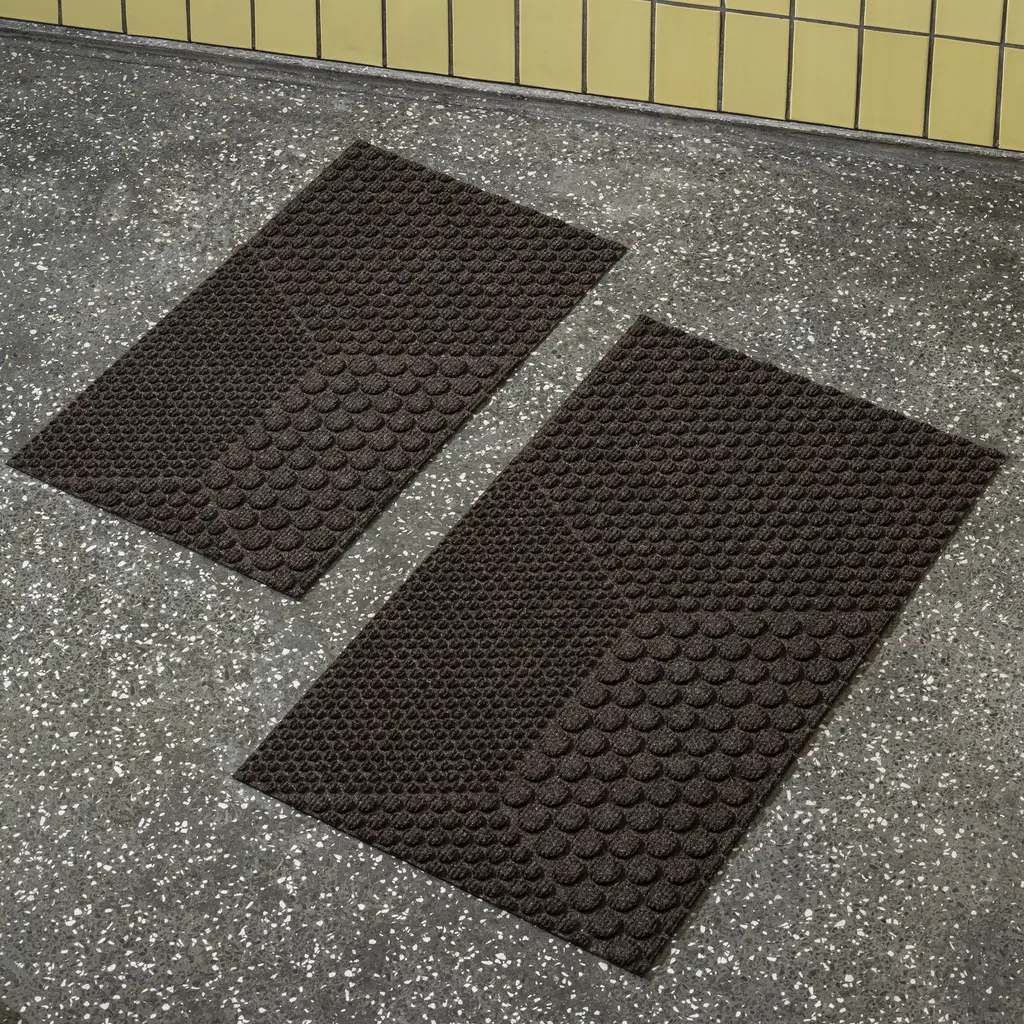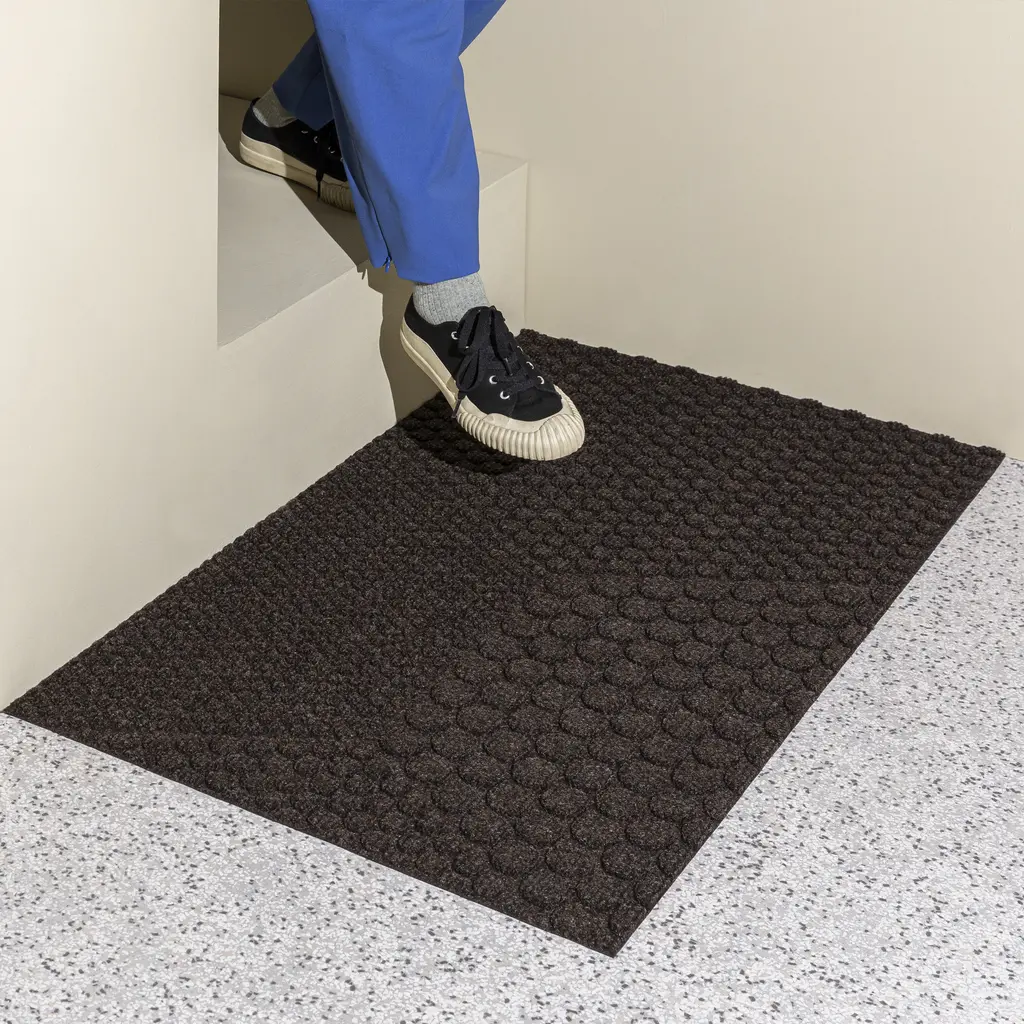 Inspired by architecture and industrial design, the Hex series from Heymat features a play between geometric patterns. Designer Lars Tornøe created the collection with circles that create hexagon shapes. The clearly organized patterns give a tranquil character to the design, while the neutral hues complement any existing color palettes. Like other Heymat products, the Hex doormats are made from recycled PET and PP, with a nitrile rubber backing that also contains up to 20% recycled content. Soft but durable, the textile layer absorbs moisture and helps trap dust and dirt. Apart from keeping this indoor entrance mat in place, the non-slip backing also prevents moisture from reaching the floor.