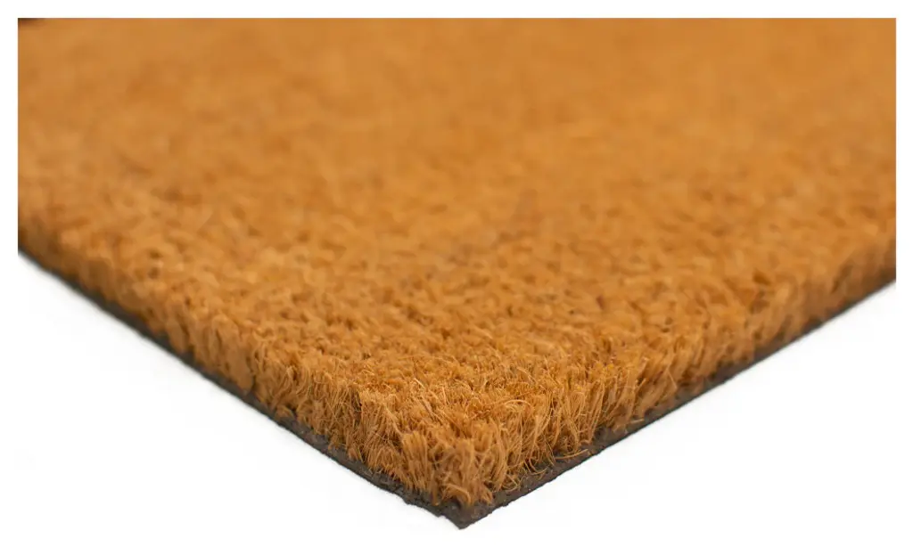 Enhance your entry or patio area with a new doormat that fits your decor and personality. Made of natural coir, a durable, dense fiber that scrapes shoes clean, this mat is vinyl backed for increased durability and to help prevent movement. Weather tolerant and colorfast, coir doormats absorb moisture, retain their shape and will not mat down regardless of the traffic. Vacuum, sweep or lightly hose clean.