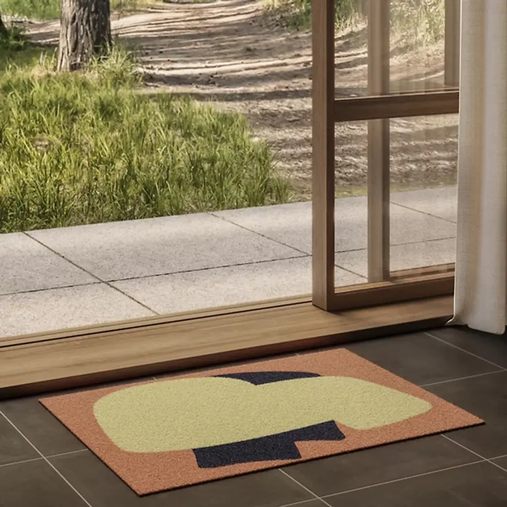 The Heymat X Sight Unseen Peach Doormat from Heymat brings creativity and artistic expression to your indoor décor. It is designed by Jill Singer and Monica Khemsurov, who experiment with abstract shapes presenting a distinctive design. Taking inspiration from organic shapes and the forms of furniture, this piece’s graphic look enhances its visual impact. It has exceptional dirt-trapping and absorption properties, as well as a soft surface. This accessory comprises 100% recycled plastic and nylon nitrile-rubber, blending sustainability and functionality.