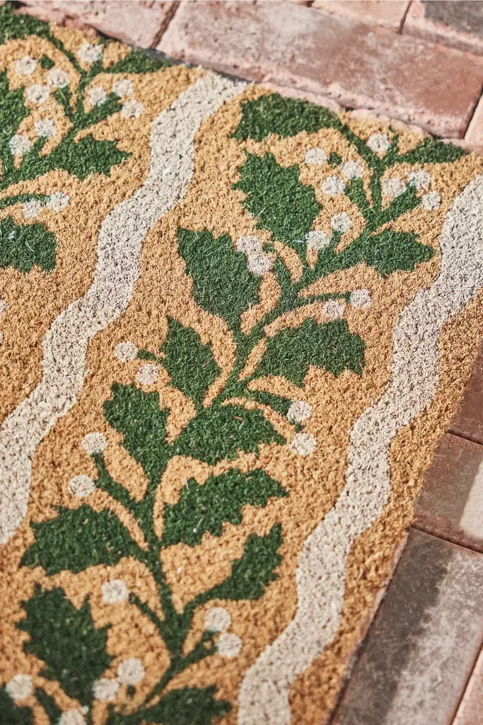 **Give the gift of endless style this season with our Holiday 2025 collection, where curated wonder meets joyous occasions.** Holly vines alternate with scalloped lines for a whimsical, holiday-infused doormat.