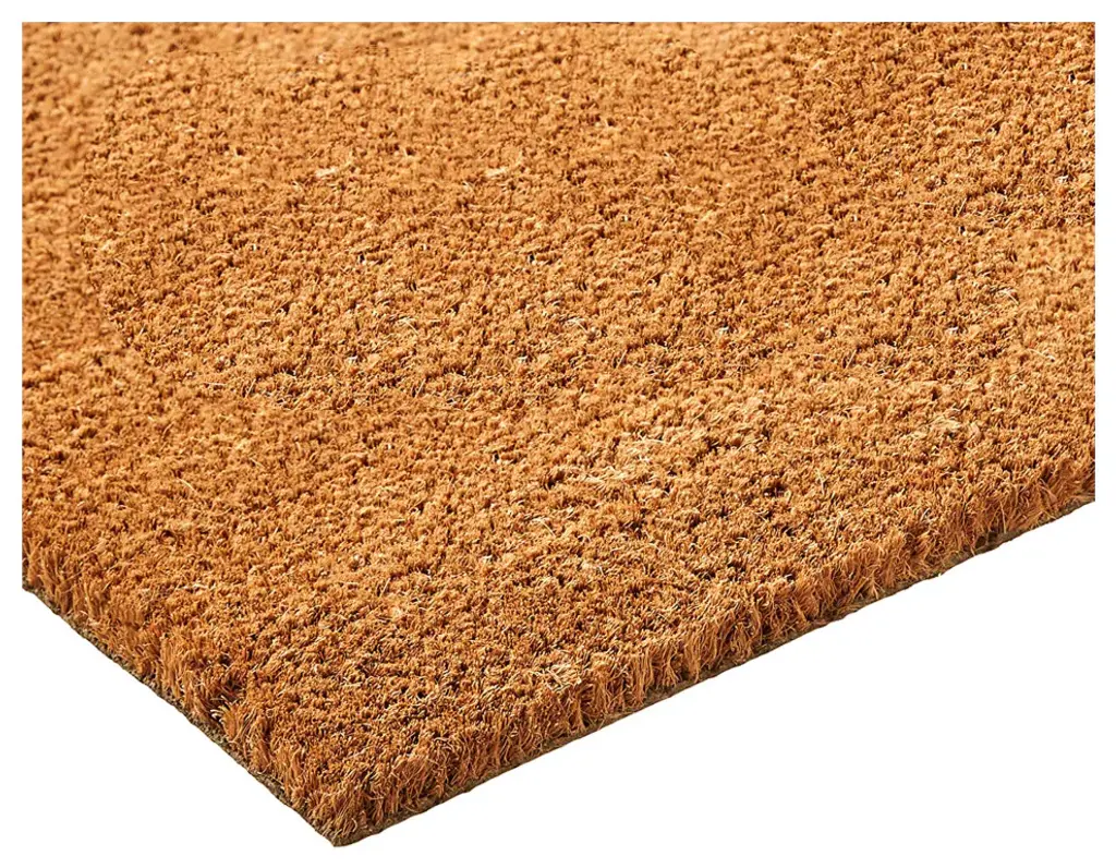 Generously over-sized to provide more coverage, Urban Chic combines contemporary flair with durability and purpose. This refreshing monogrammed look is made of natural coir, a durable fiber that naturally scrapes shoe bottoms clean and has a resilient vinyl backing that helps prevent movement. Weather tolerant, this doormat absorbs moisture, retains its shape and will not mat down regardless of the traffic. For best results, use in a sheltered area such as a covered porch, keeping extreme moisture and sunlight to a minimum. Vacuum, sweep or lightly hose clean.