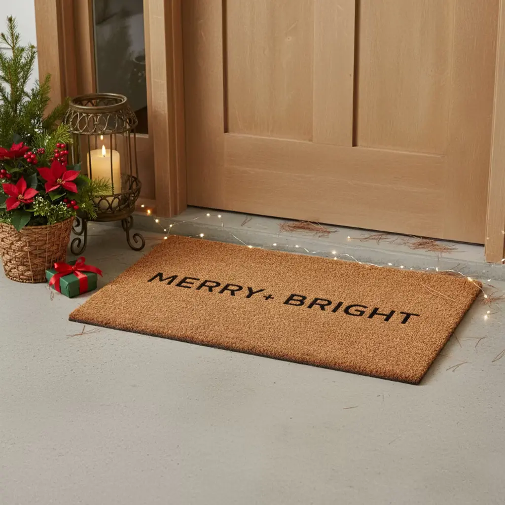 Known for it's extreme durability and ability to withstand heavy foot traffic, this 17-inch x 29-inch brown and black christmas merry and bright outdoor coir door mat is an ideal option for the front door or entrance way of your home or business. Crafted from coconut husks, this mat is not only functional but is an an eco-friendly and visually appealing accessory. The naturally bristled texture of coir is an efficient way to clean dirt and mud from shoes and is easy to clean and maintain. Add this festive and decorative christmas mat to create a practical yet inviting welcome to all who enter. 17.00-inch h x 29.00-inch w x 0.60-inch d.