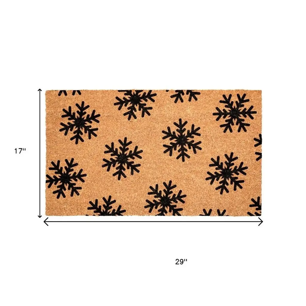 Homeroots 17" X 29" Brown And Black Christmas Snowflake Outdoor Coir Door Mat