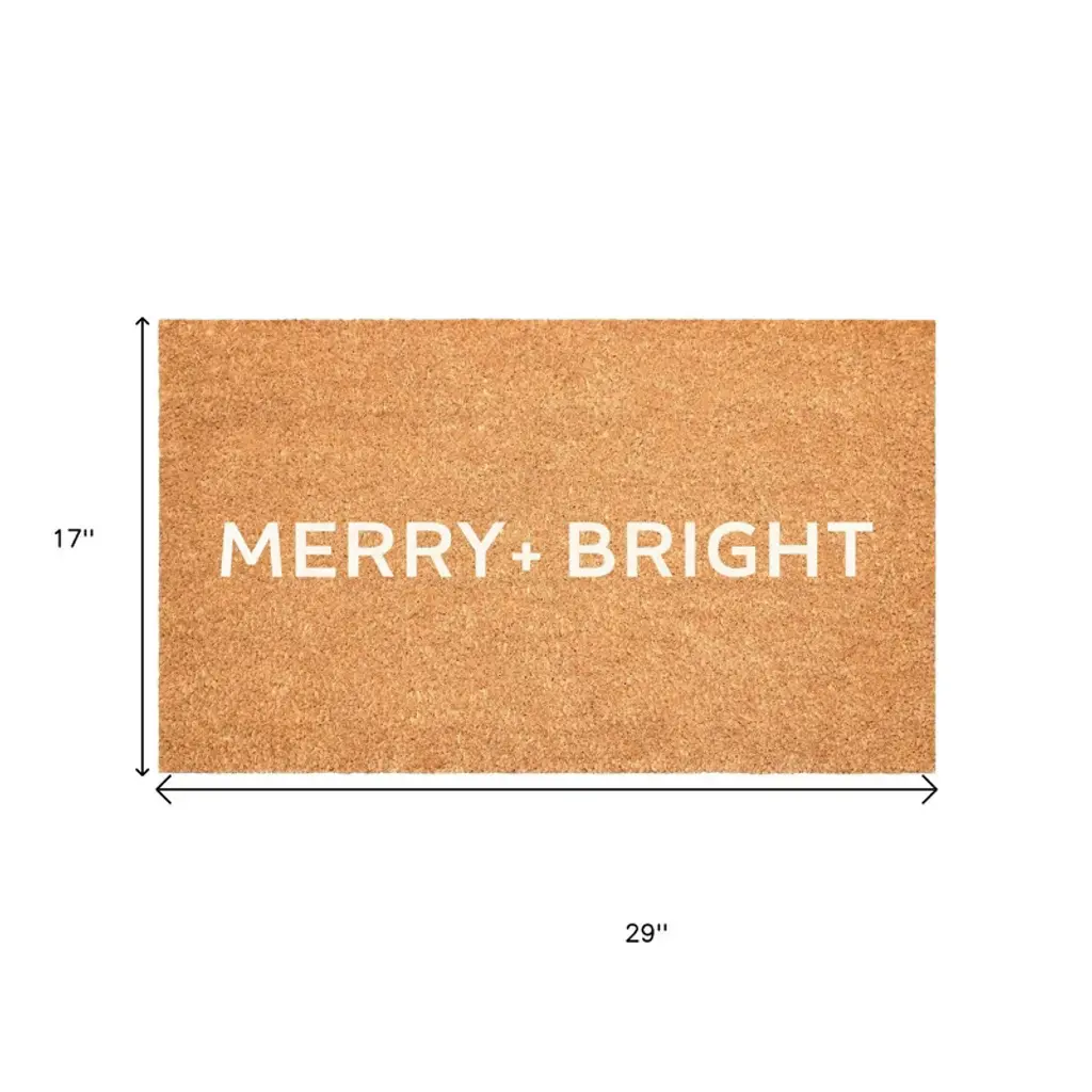 Homeroots 17" X 29" Brown And White Christmas Merry And Bright Outdoor Coir Door Mat