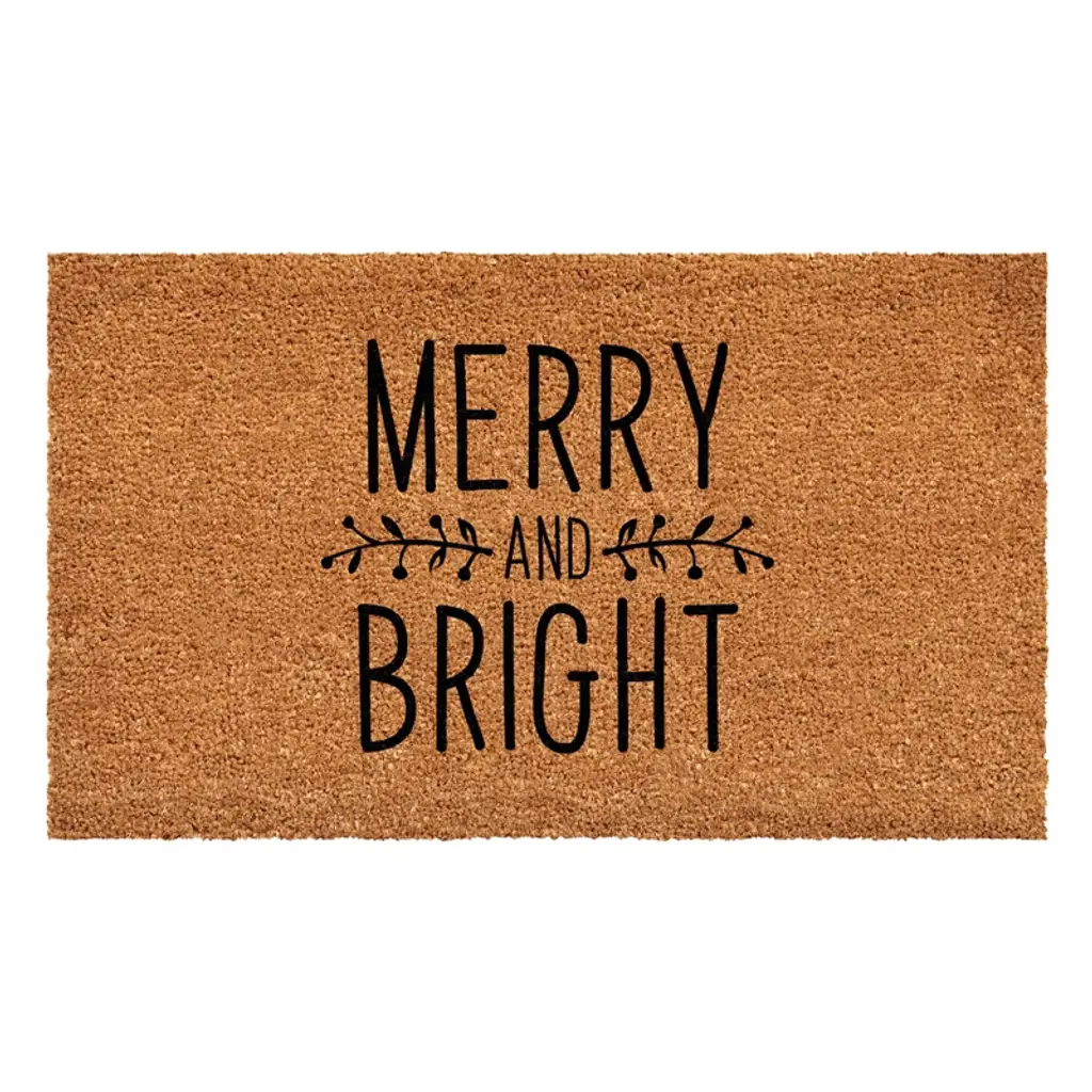Known for it's extreme durability and ability to withstand heavy foot traffic, this 17-inch x 29-inch brown and white christmas merry and bright outdoor coir door mat is an ideal option for the front door or entrance way of your home or business. Crafted from coconut husks, this mat is not only functional but is an an eco-friendly and visually appealing accessory. The naturally bristled texture of coir is an efficient way to clean dirt and mud from shoes and is easy to clean and maintain. Add this festive and decorative christmas mat to create a practical yet inviting welcome to all who enter. 17.00-inch h x 29.00-inch w x 0.60-inch d.