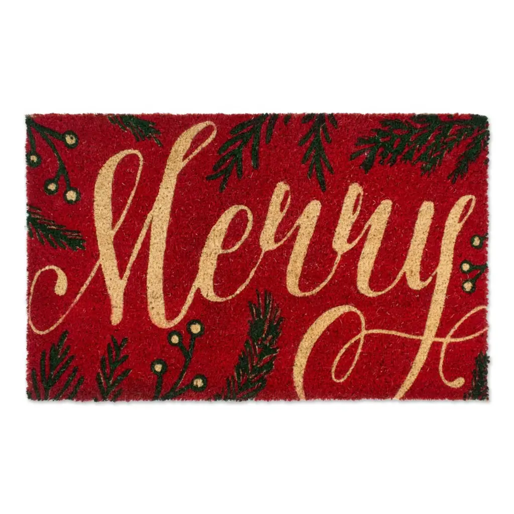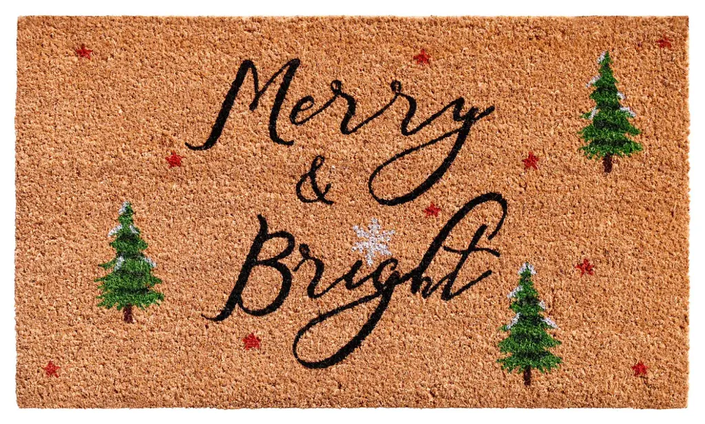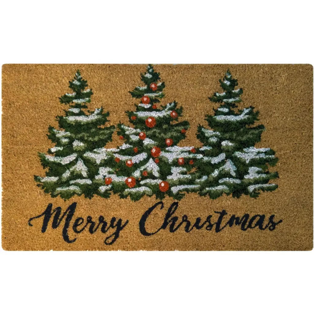 Known for it's extreme durability and ability to withstand heavy foot traffic, this 17-inch x 29-inch natural and brown Merry Christmas outdoor coir door mat is an ideal option for the front door or entrance way of your home or business. Crafted from coconut husks, this mat is not only functional but is an an eco-friendly and visually appealing accessory. The naturally bristled texture of coir is an efficient way to clean dirt and mud from shoes and is easy to clean and maintain. Add this festive and decorative Christmas branches mat to create a practical yet inviting welcome to all who enter. 17.00-inch h x 29.00-inch w x 0.60-inch d.