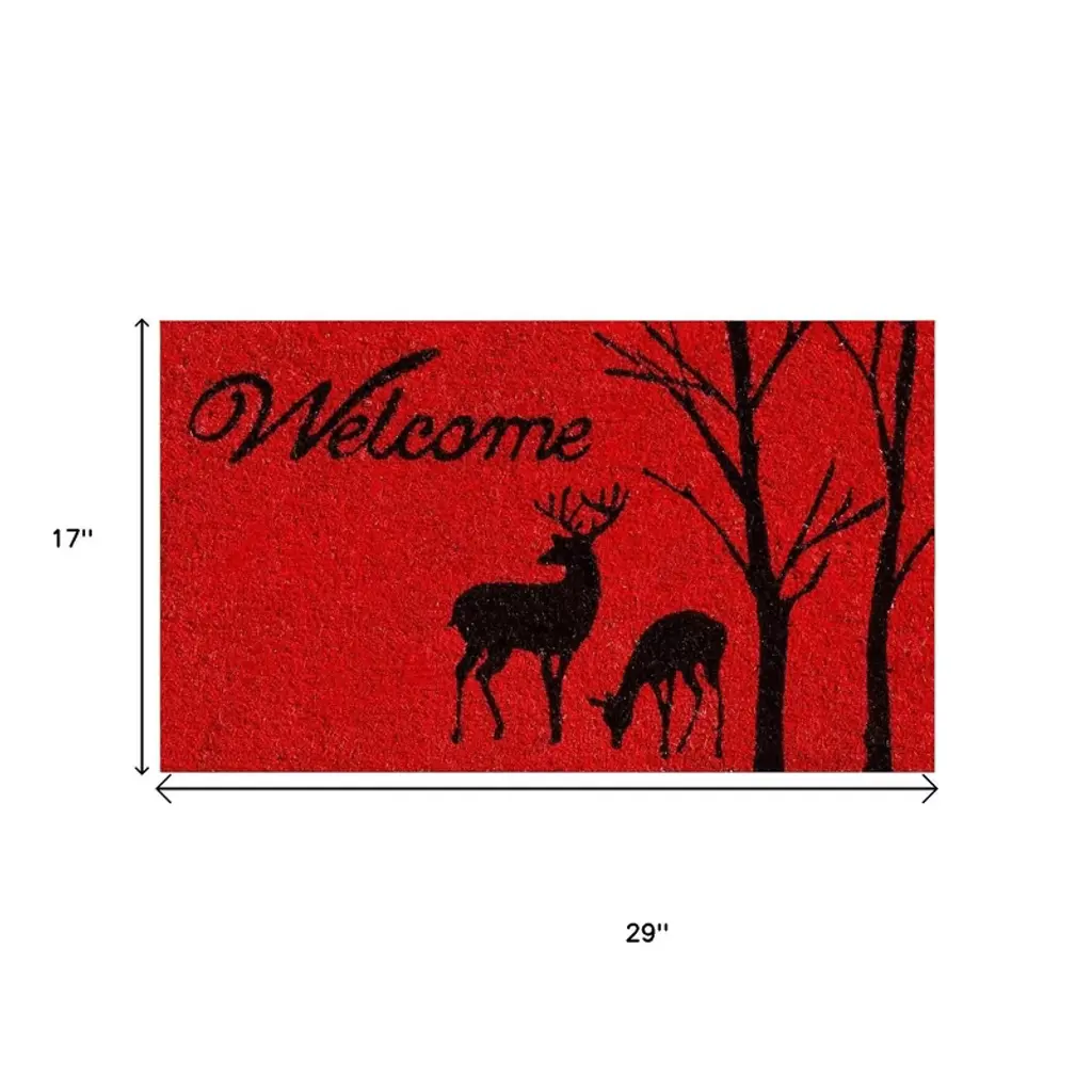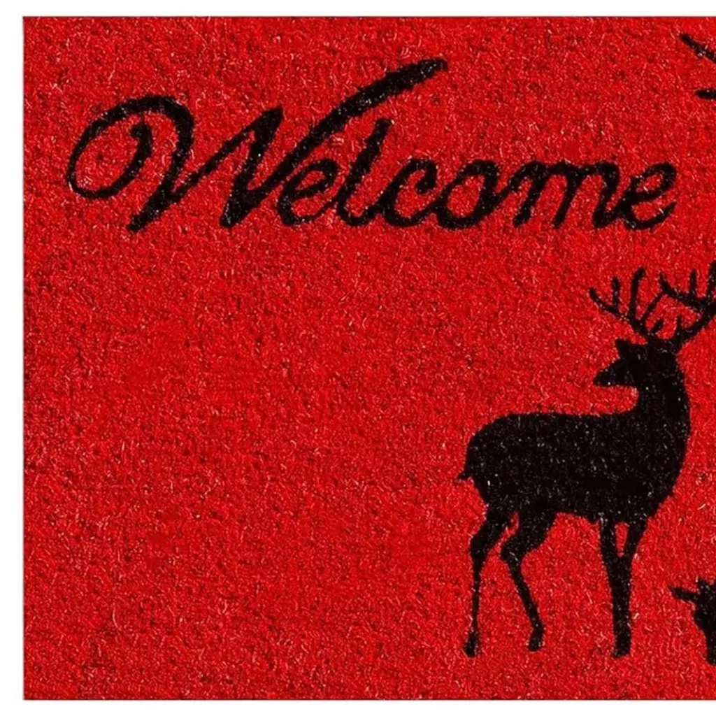 Homeroots 17" X 29" Red And Black Christmas Deer Welcome Outdoor Coir Door Mat